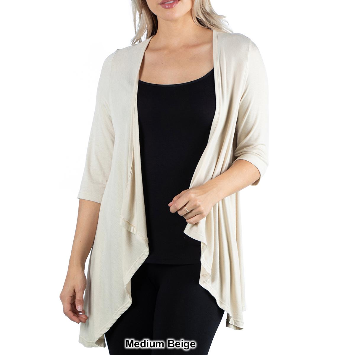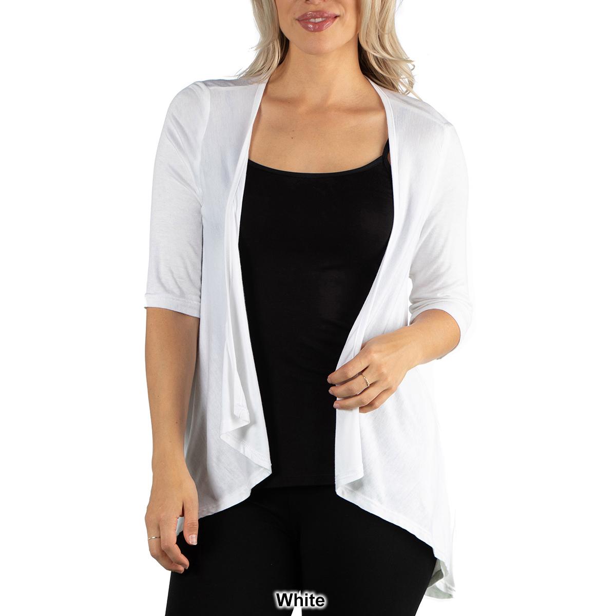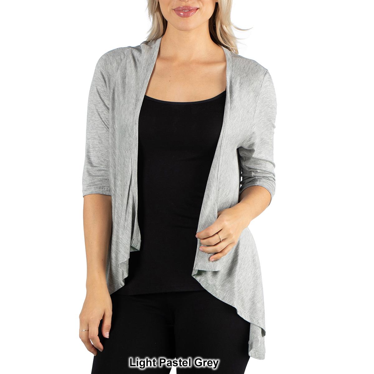 Create a stylish layered look with this Womens 24/7 Comfort Apparel open front cardigan. Featuring a cascading front shape, elbow length sleeves, and a loose comfortable shape making this the perfect way to complete any look.