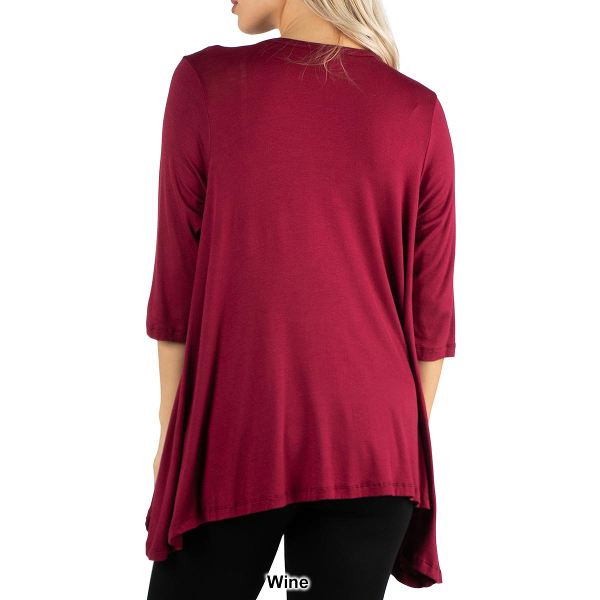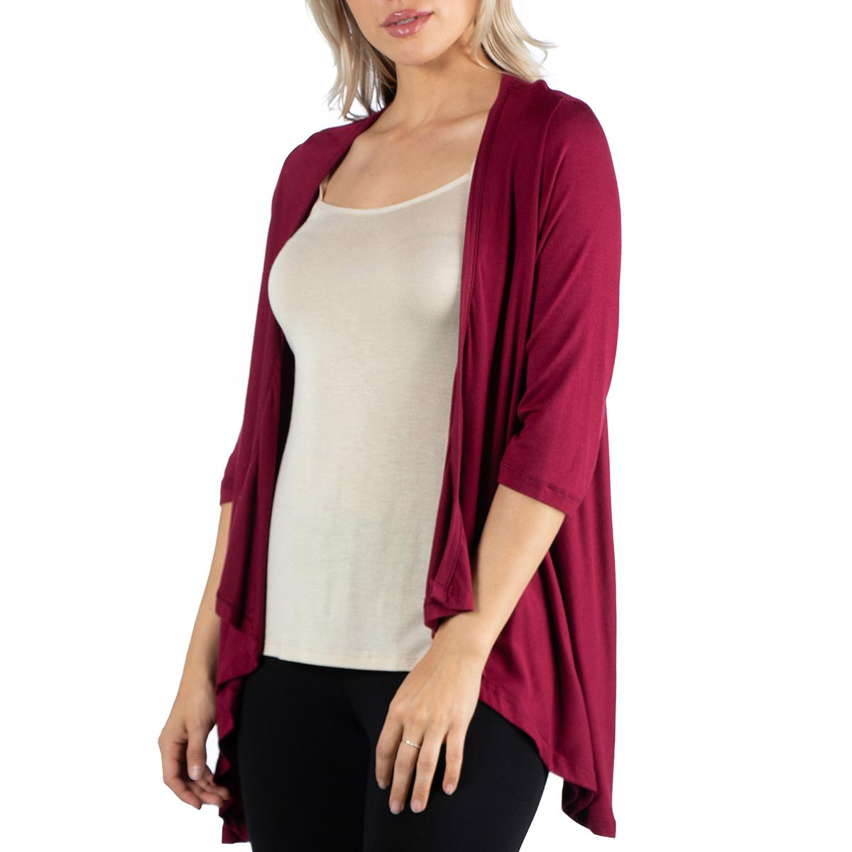 Description Create a stylish layered look with this Womens 24/7 Comfort Apparel open front cardigan. Featuring a cascading front shape, elbow length sleeves, and a loose...