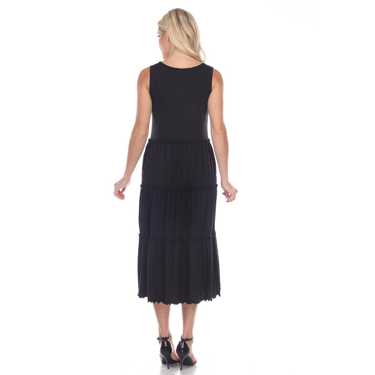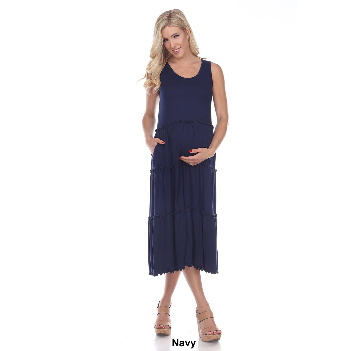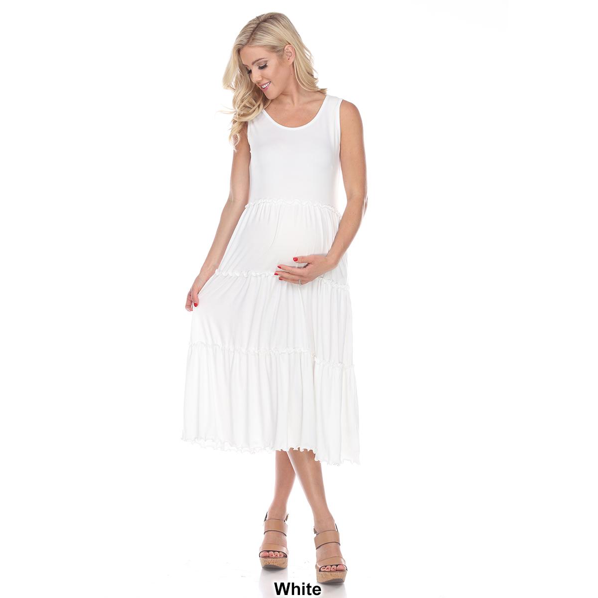 This Plus Size White Mark tiered midi maternity dress is sure to give your look a seriously chic edge. Featuring a super soft material that offers a perfect shape, sleeveless, and a tiered smock design, this dress will look absolutely stunning on your growing bump.