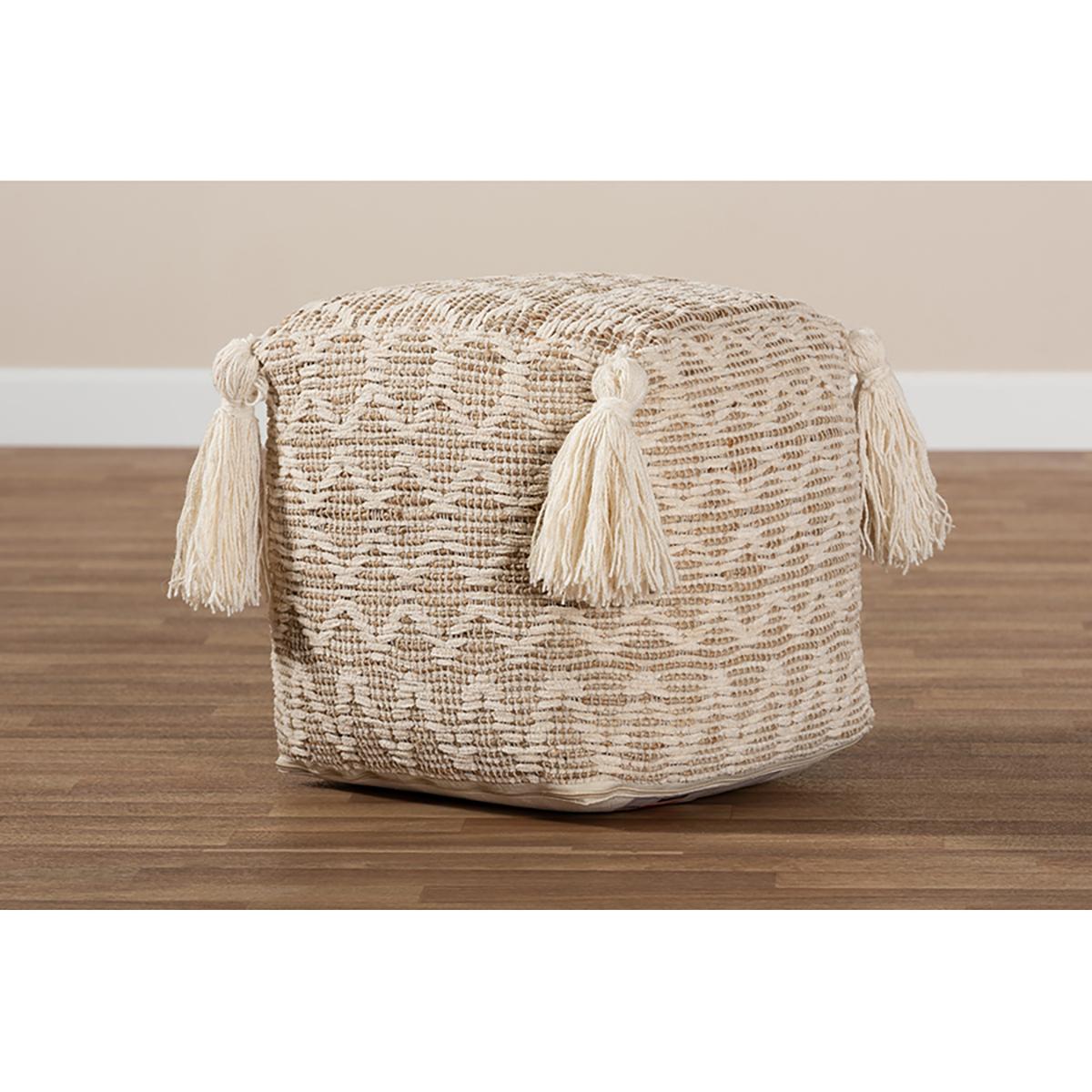 Baxton Studio Noland Handwoven Cotton and Hemp Pouf Ottoman