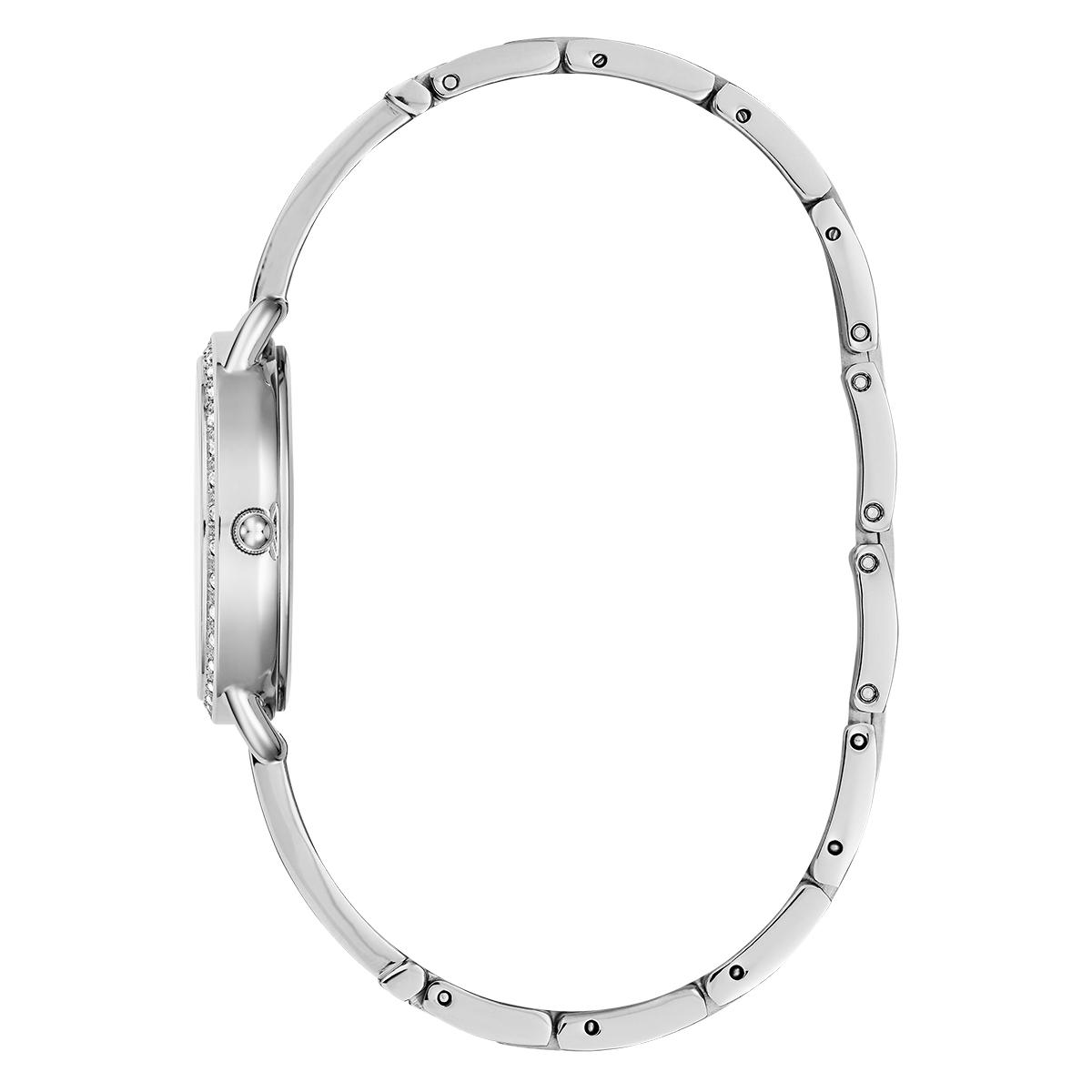 Add a touch of sparkle with this Womens Guess dressy bangle watch featuring crystals on the case, bangle, and dial. This timepiece is perfect to layer with your favorite bracelets or worn alone.Limited Manufacturer´s Warranty.