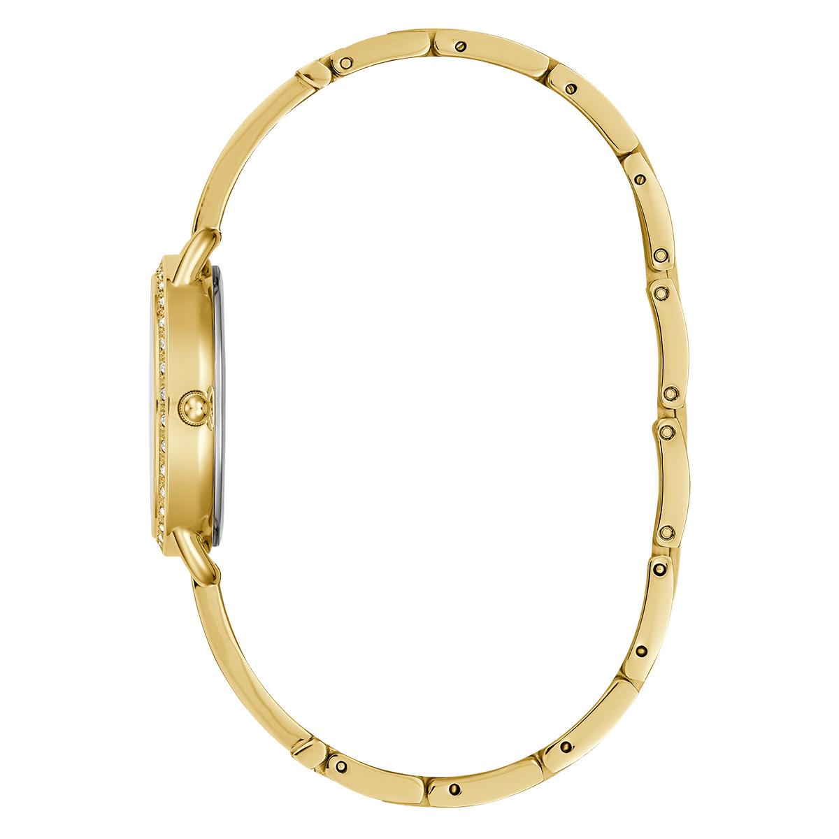 Add a touch of sparkle with this Womens Guess dressy bangle watch featuring crystals on the case, bangle, and dial. This timepiece is perfect to layer with your favorite bracelets or worn alone.Limited Manufacturer´s Warranty.