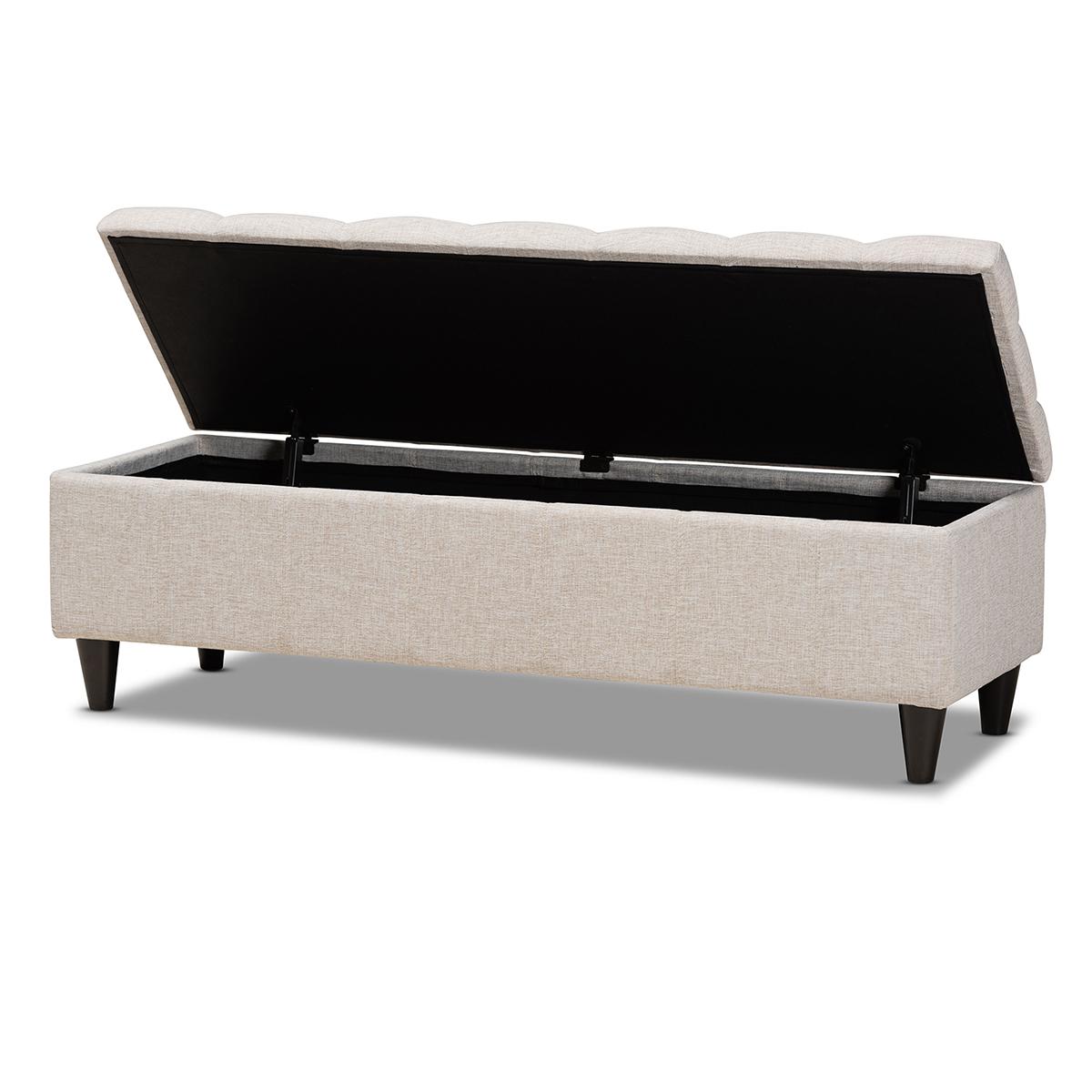 Baxton Brette Mid-Century Upholstered Storage Bench Ottoman