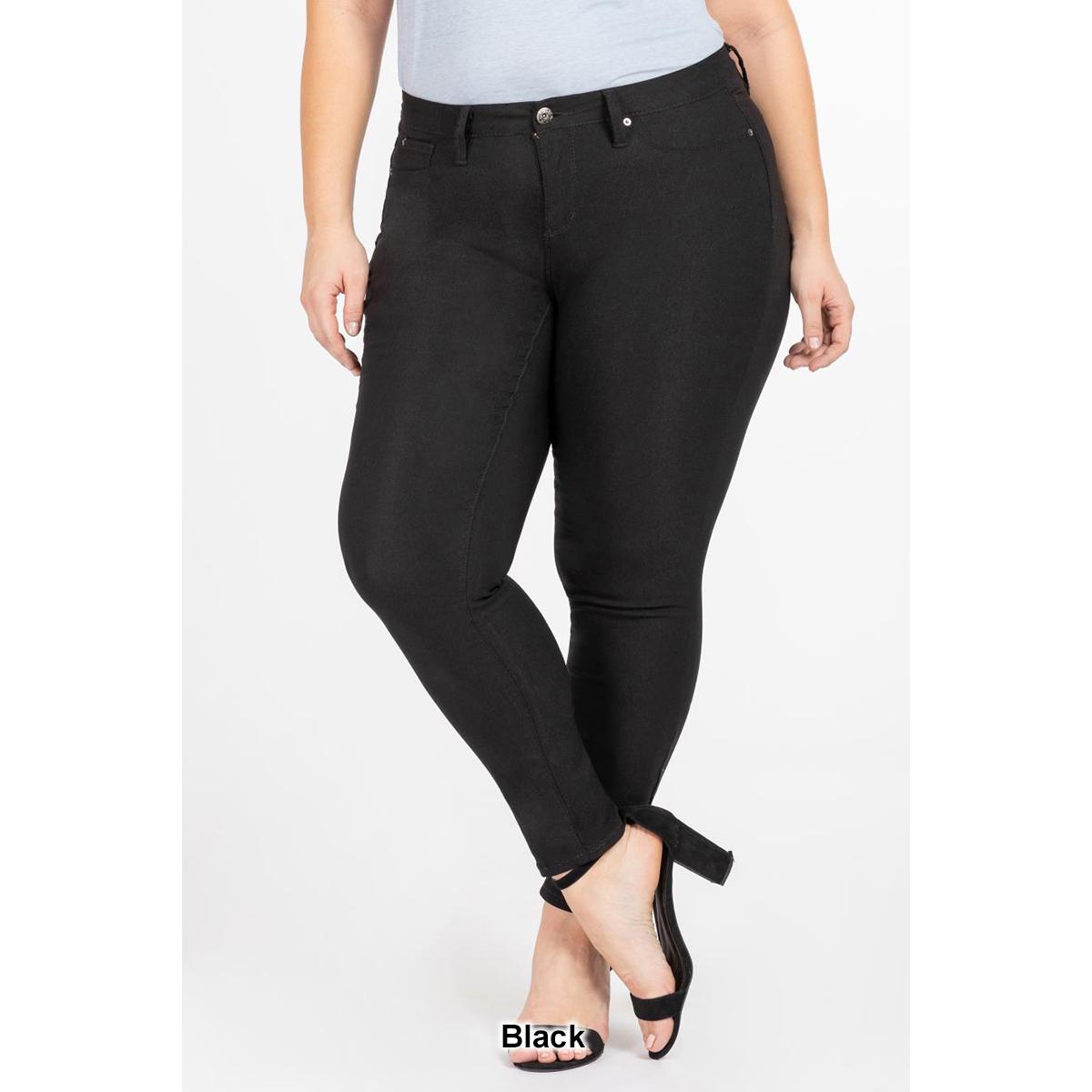 With a figure flattering fit that sculpts your waistline, these Plus Size Royalty hyper stretch jeans give you just the right amount of freedom. These solid mid-rise skinny leg bottoms feature a zip fly & button closure with belt loops and functional back pockets.