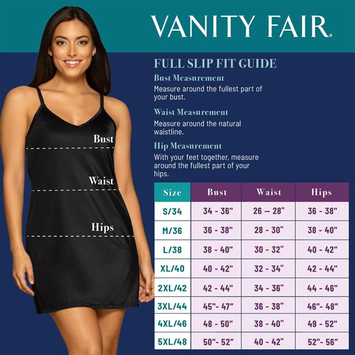 This Womens Vanity Fair® Rosette lace non-cling full slip features adjustable straps and 1 inch lace trim.