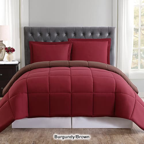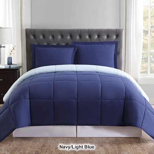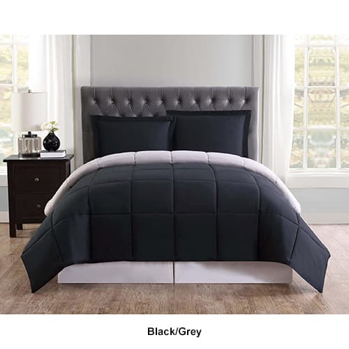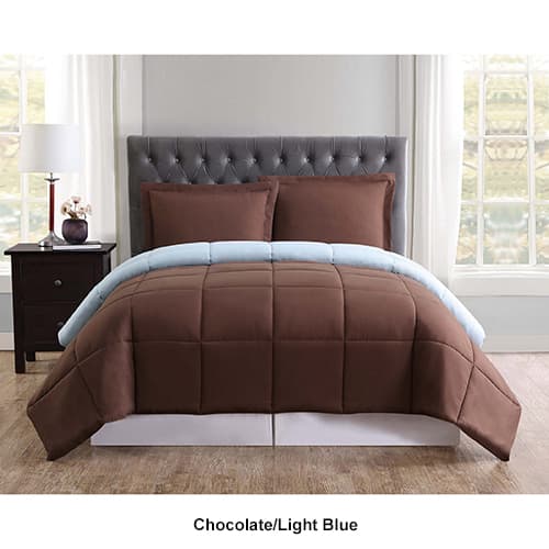 The Truly Soft Everyday reversible comforter set provides revolutionary softness! The reversible solid color comforters are the perfect way to add color to your room easily by flipping the comforter over. This set comes complete with coordinating shams. 100% Microfiber. 100% Hypoallergenic Polyester Fill. Machine wash.