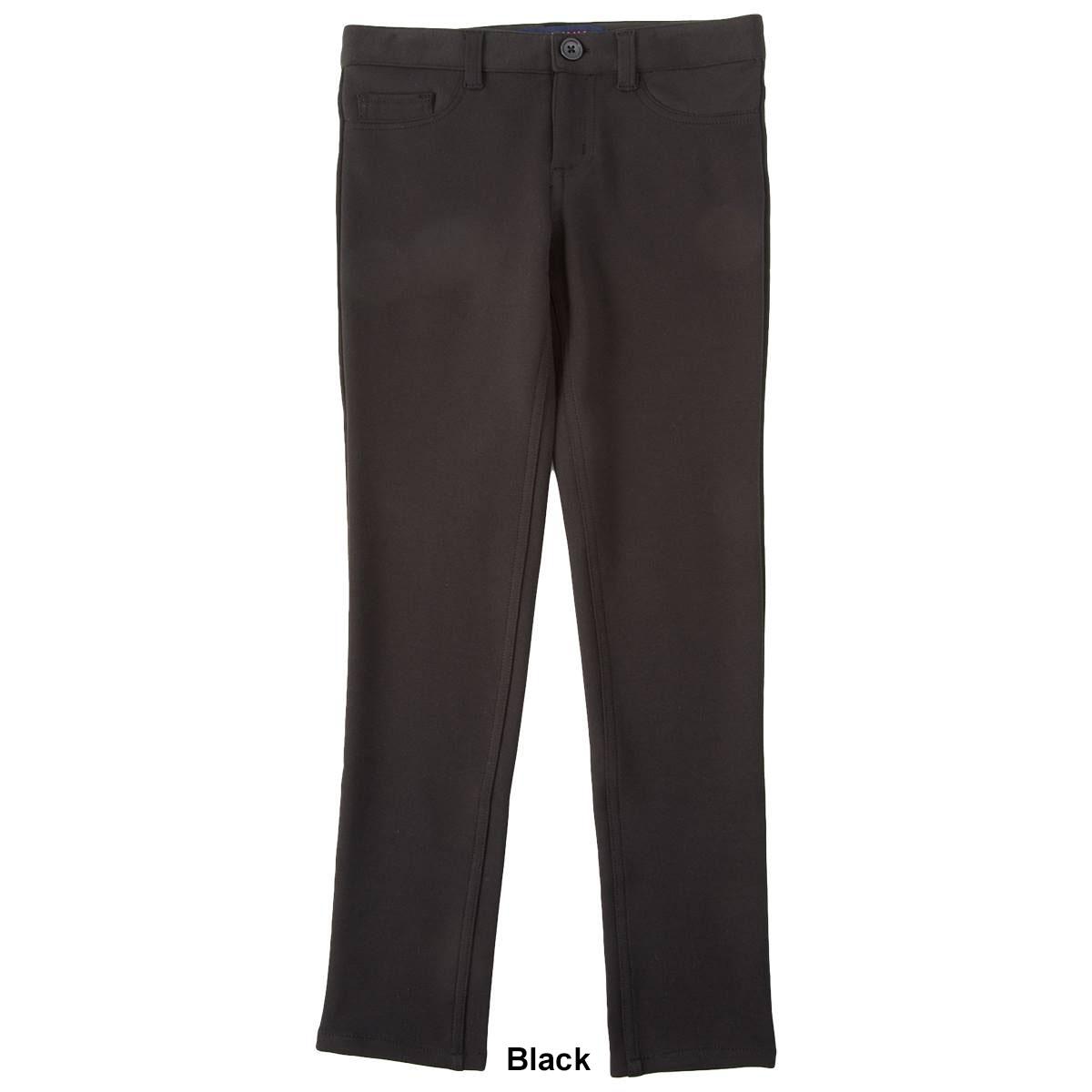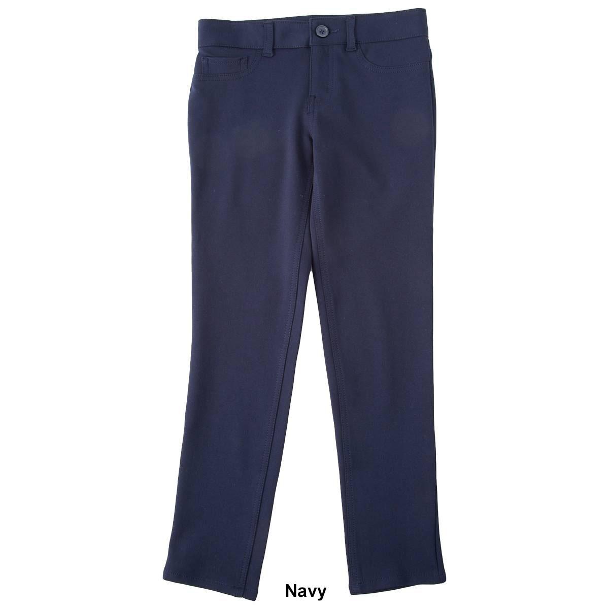Give her classic style added comfort this season with this Girls (7-16) School Uniform 5-pocket knit pants. These pants feature a zip fly and button front closure, two faux front pockets, and a stretch fabric for optimum comfort.