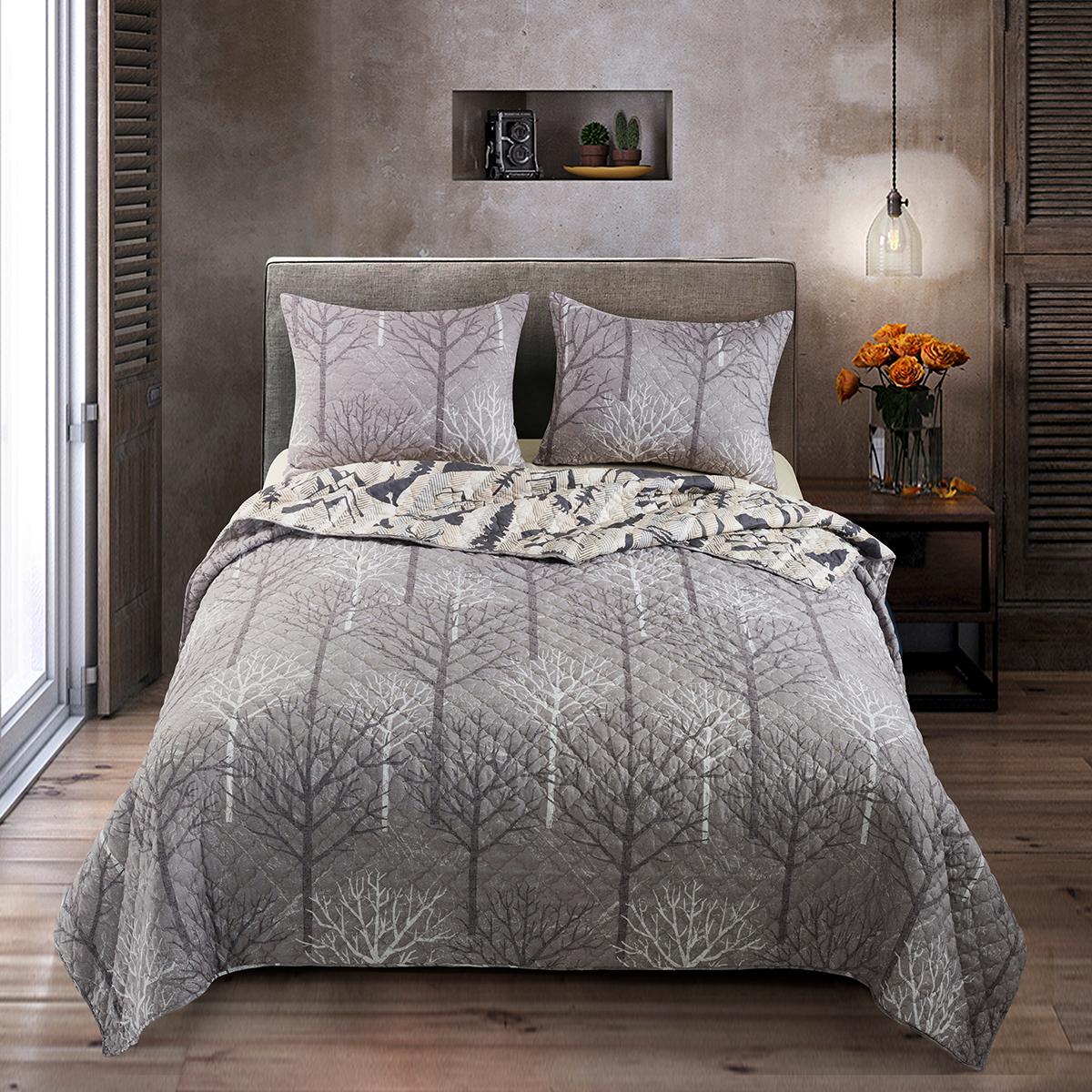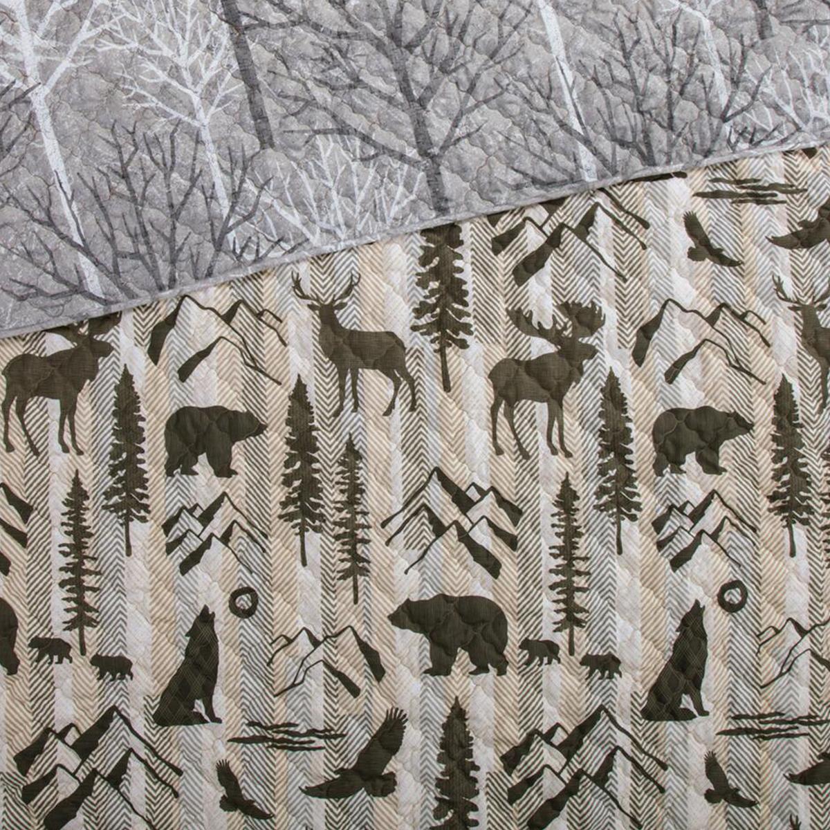 Feel as though you are lying peacefully in the forest or among graceful wildlife with this beautifully illustrated Your Lifestyle Forest Weave Quilt Set. Change your room décor weekly with either side depending on your mood and interior decor needs. Colors include wheat, ivory, and chocolate on one side, and silver and grey tones on the reverse.