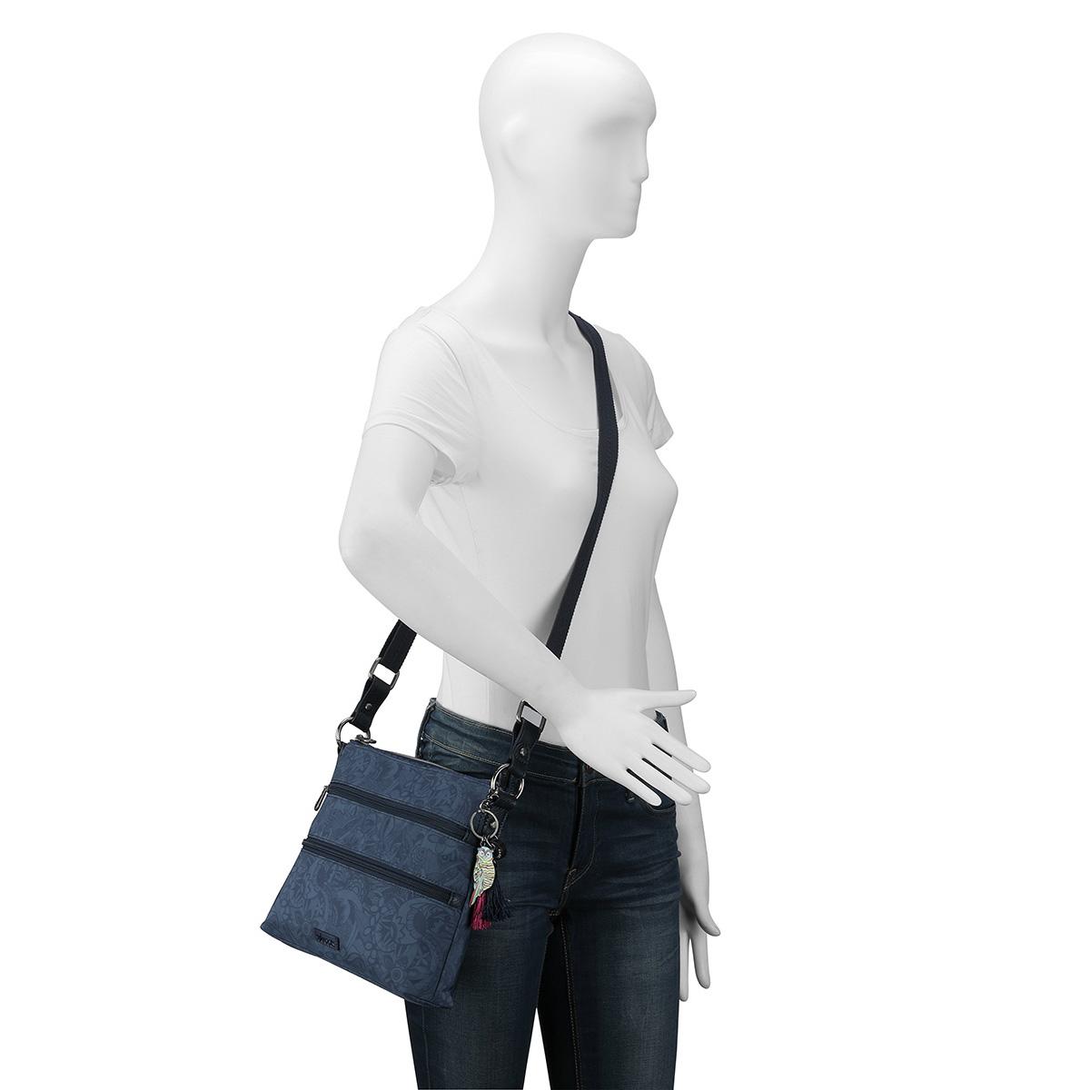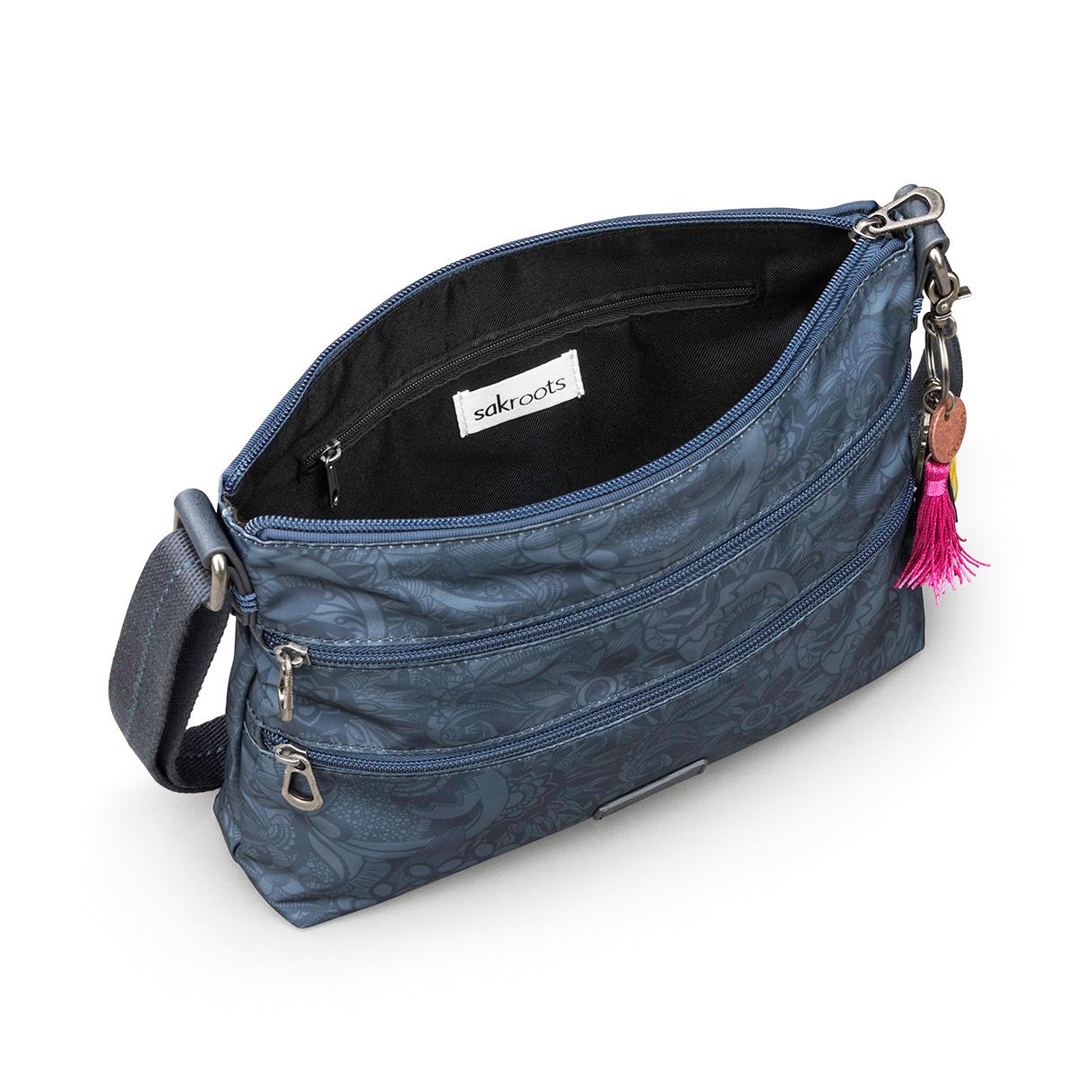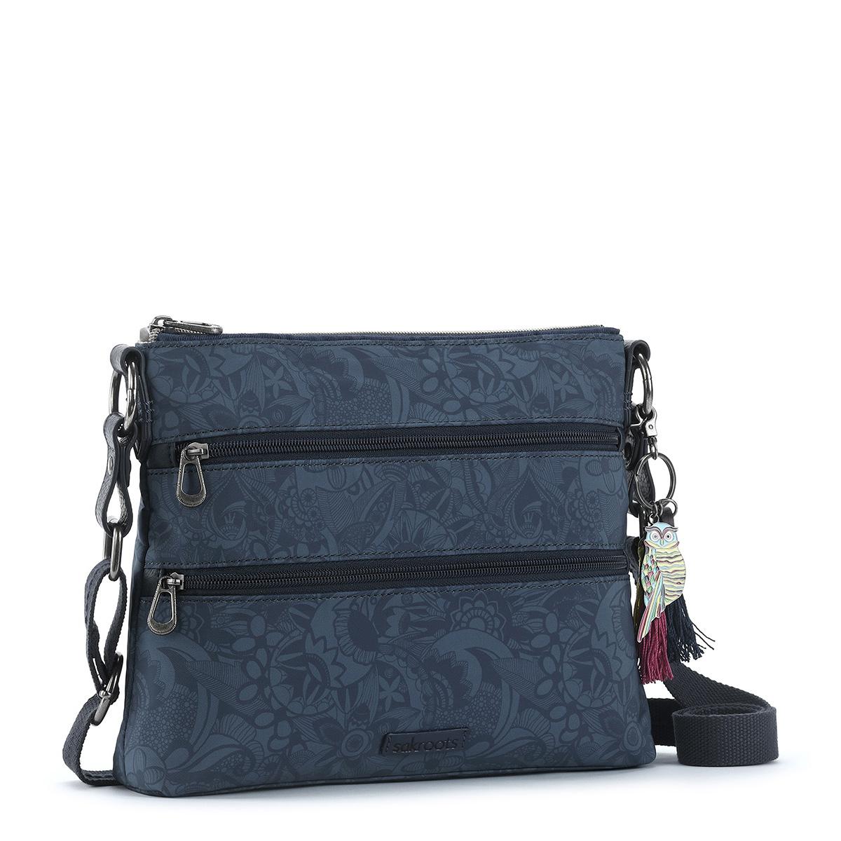Description This Sakroots basic nylon crossbody features antique silver-tone hardware, zippered closure, two front pockets and one back pocket, and an adjustable webbing strap....