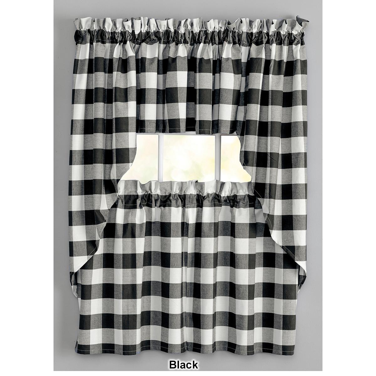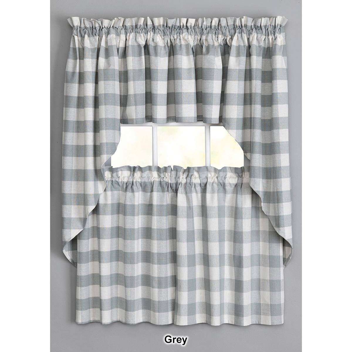 Description This classic yarn dyed check kitchen curtain set hits the ultimate farmhouse vibe and is complemented by a matching swag pair and valance. This basic check pattern...