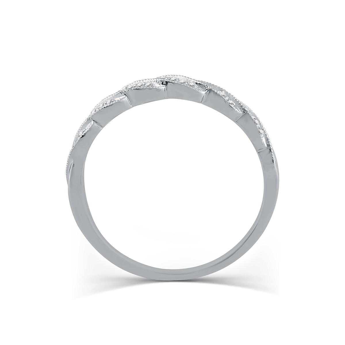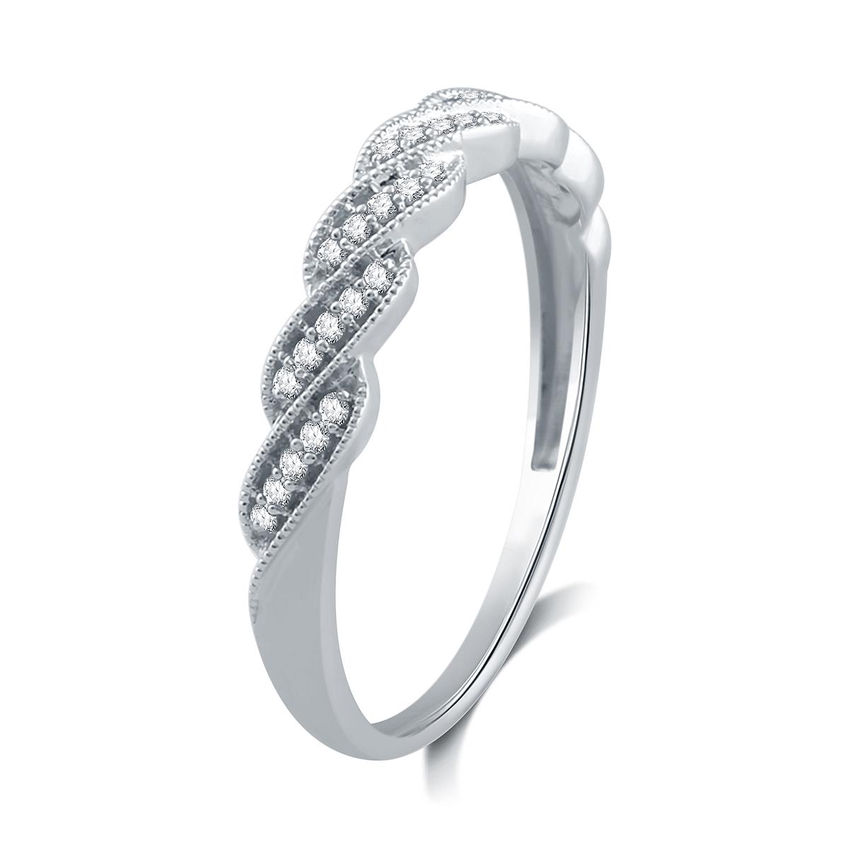 The Endless Affection™ wedding band is crafted in sterling silver and features a delicate braid design adorned with 1/10ctw. diamonds. This elegant band symbolizes eternal love and commitment, with its intertwining braid representing the unbreakable bond between two hearts. The sparkling diamonds add a touch of brilliance, making this wedding band a timeless and sophisticated choice for any bride.