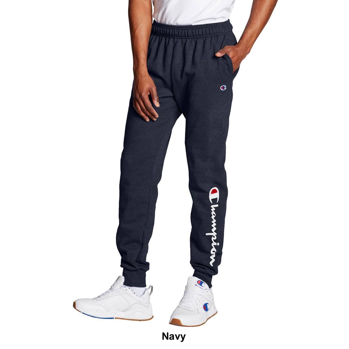Description Add a comfortable classic style with these Mens Champion® Powerblend® logo fleece joggers. The joggers feature a drawstring elastic waist, two side seam pockets,...