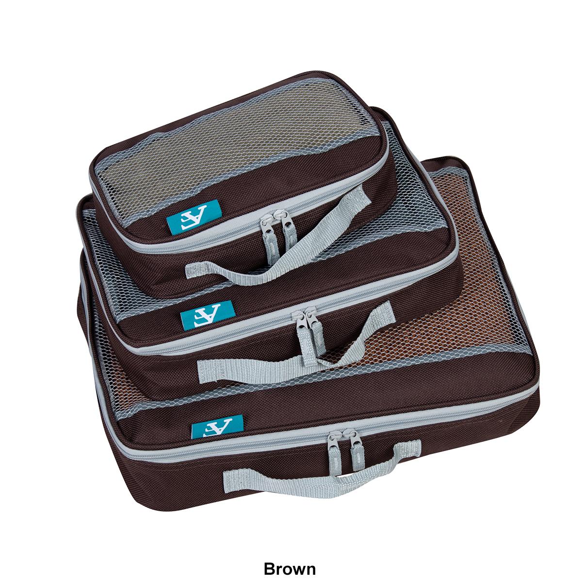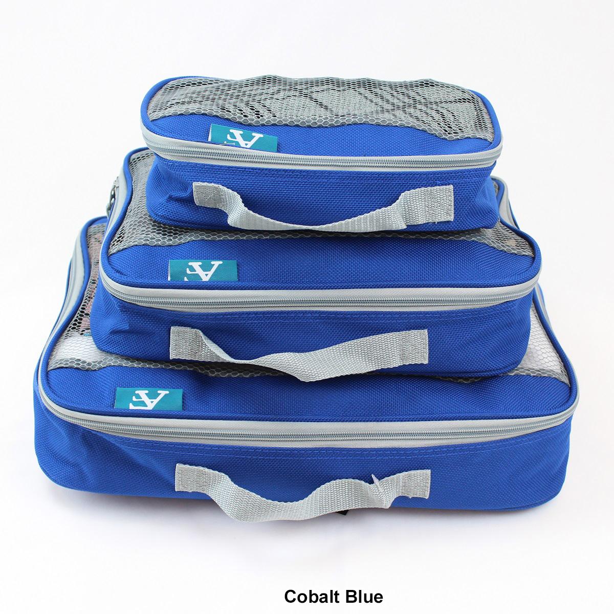 These American Flyer South West packing cubes are a great way to keep you organized while traveling. This 3 piece set features a double strap zipper pull, mesh top for easy view and ventilation, sturdy corner piping, and a strap handle to carry by itself.