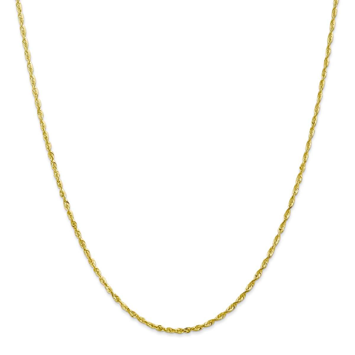 A tasteful choice for any look, this Gold Classics™ rope chain necklace is crafted from 10kt. yellow gold. Featuring a diamond-cut finish for a lasting shine, this 16-inch long and 2mm wide chain necklace is great for any occasion. A lobster clasp keeps this solid chain necklace safe around your neckline.