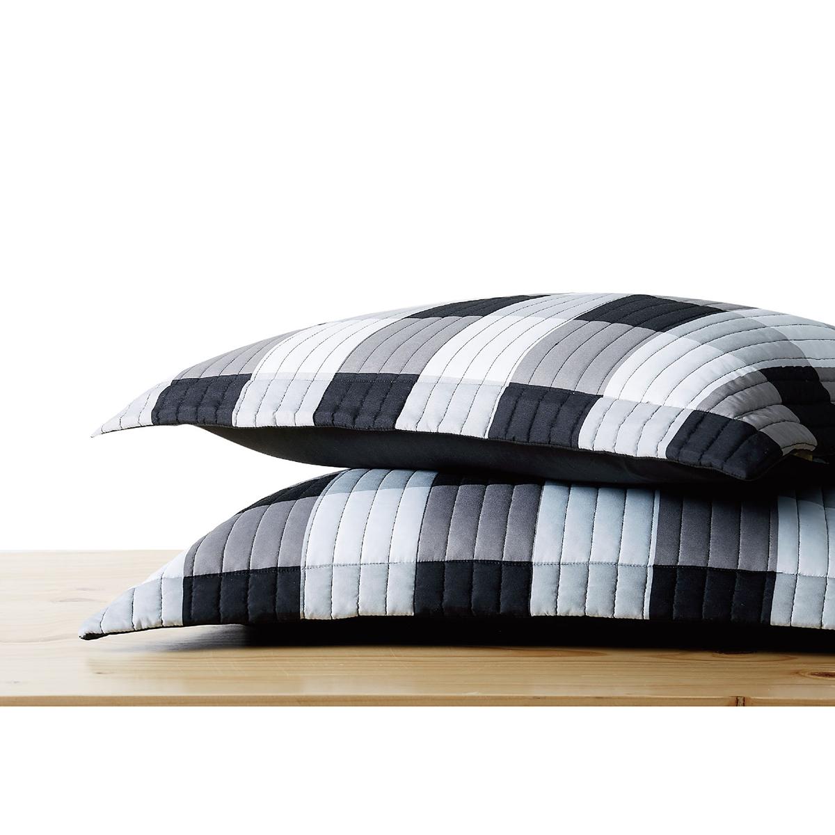 The large Truly Soft Everyday Buffalo quilt set features a white background in an intersecting pattern on the face and reverses to a solid. This set includes a quilt and sham that will create a fun modern farmhouse look in any bedroom. Thread count: 180.
