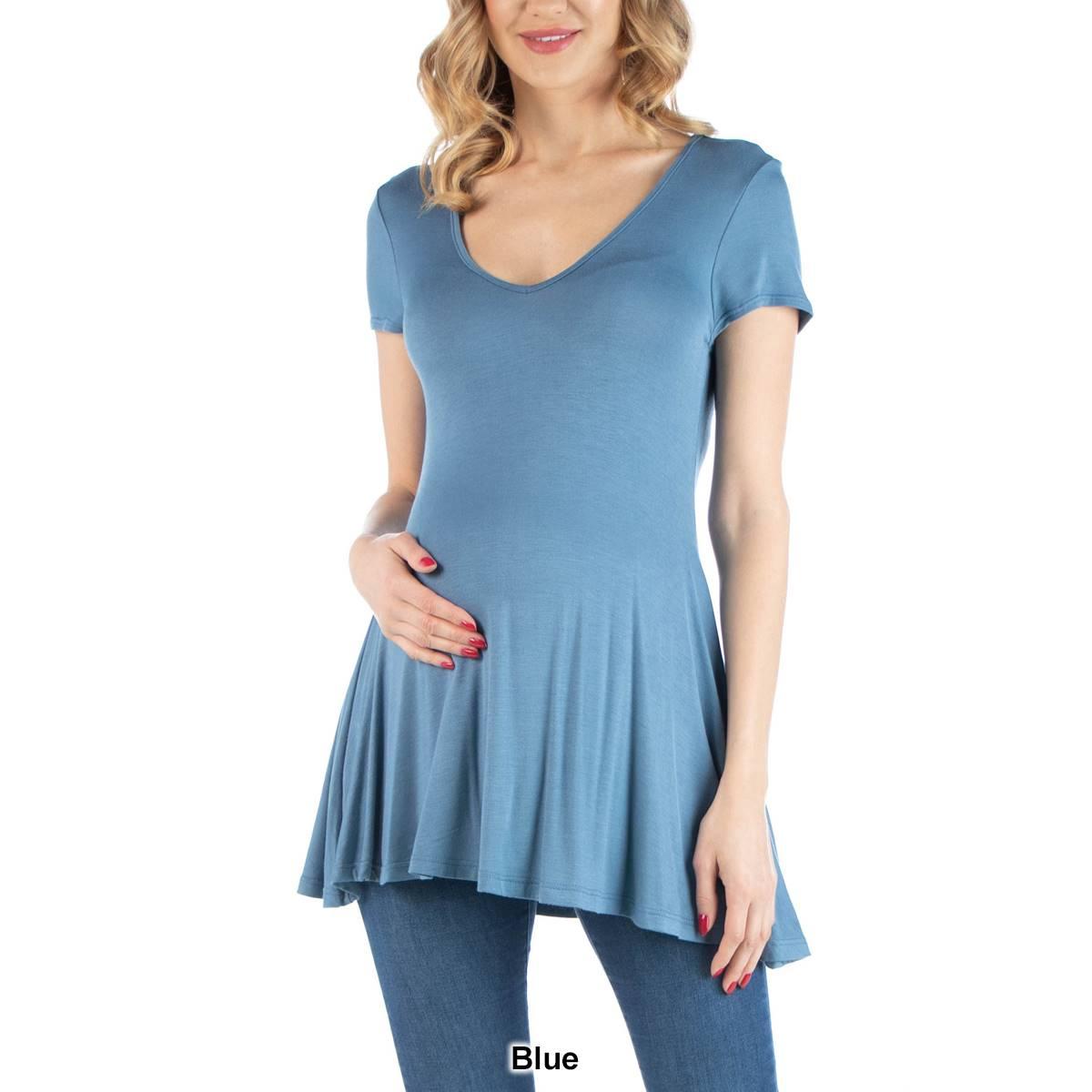 Description This must-have Womens 24/7 Comfort Apparel cap sleeve tunic maternity top is comfortable and easy to style up or down for any occasion. Featuring a v-neck, capped...