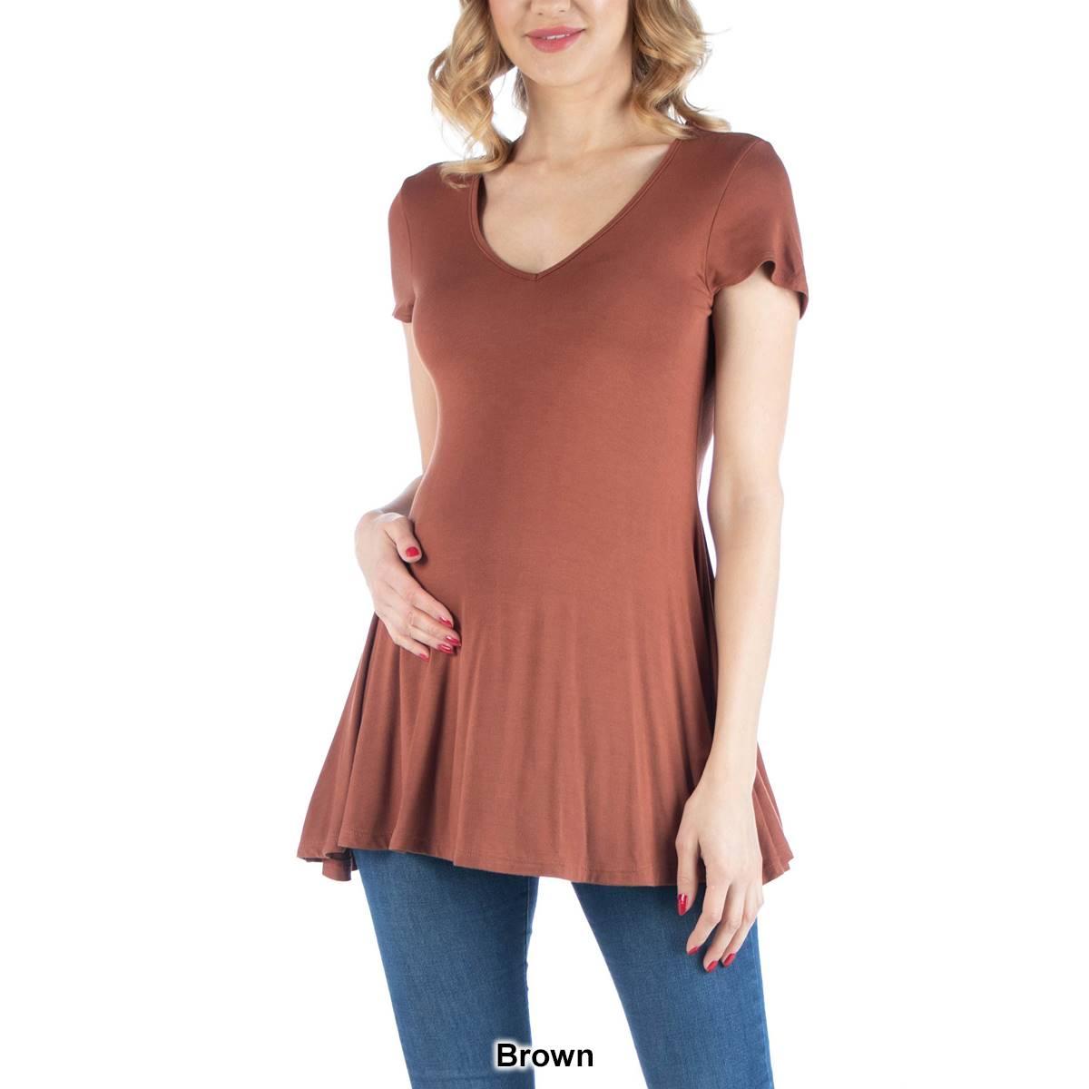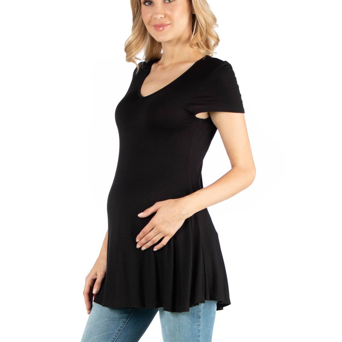 Description This must-have Plus Size 24/7 Comfort Apparel cap sleeve tunic maternity top is comfortable and easy to style up or down for any occasion. Featuring a v-neck, capped...
