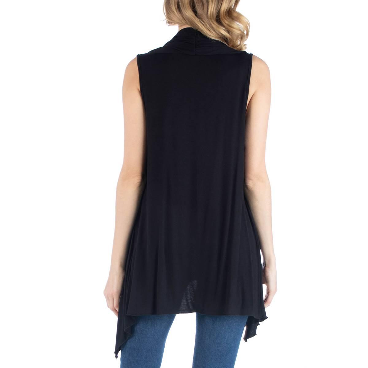 The perfect piece to complete any outfit, this womens 24/7 Comfort Apparel draped maternity cardigan vest will be a must-have favorite for the spring and summer. Featuring a collarless open front, soft drape asymmetric hemline, and loose fit shape, this stylish contemporary maternity vest can be styled up or down for any occasion.