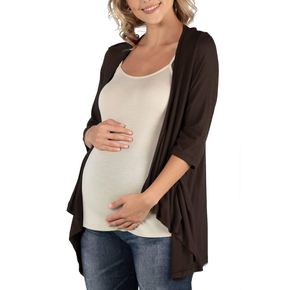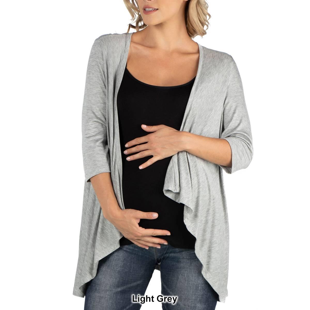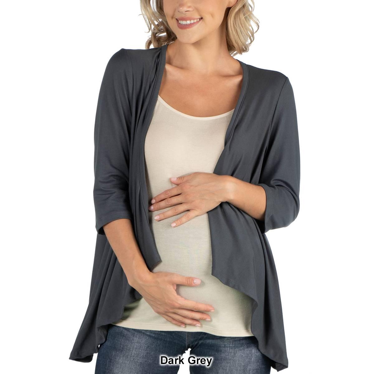 Description Create a stylish layered look with this Womens 24/7 Comfort Apparel open front maternity cardigan. Featuring a cascading front shape, elbow length sleeves, and a...