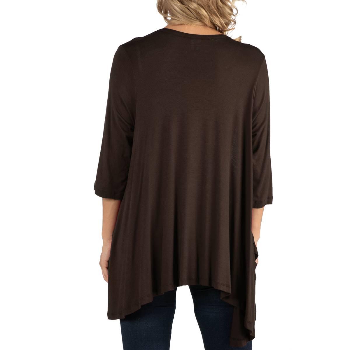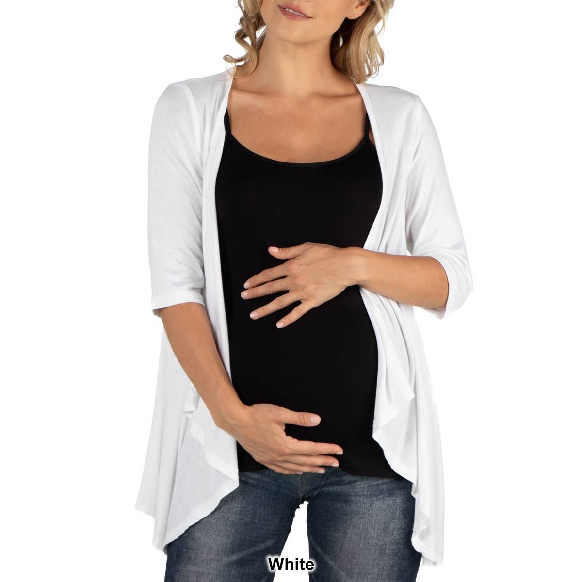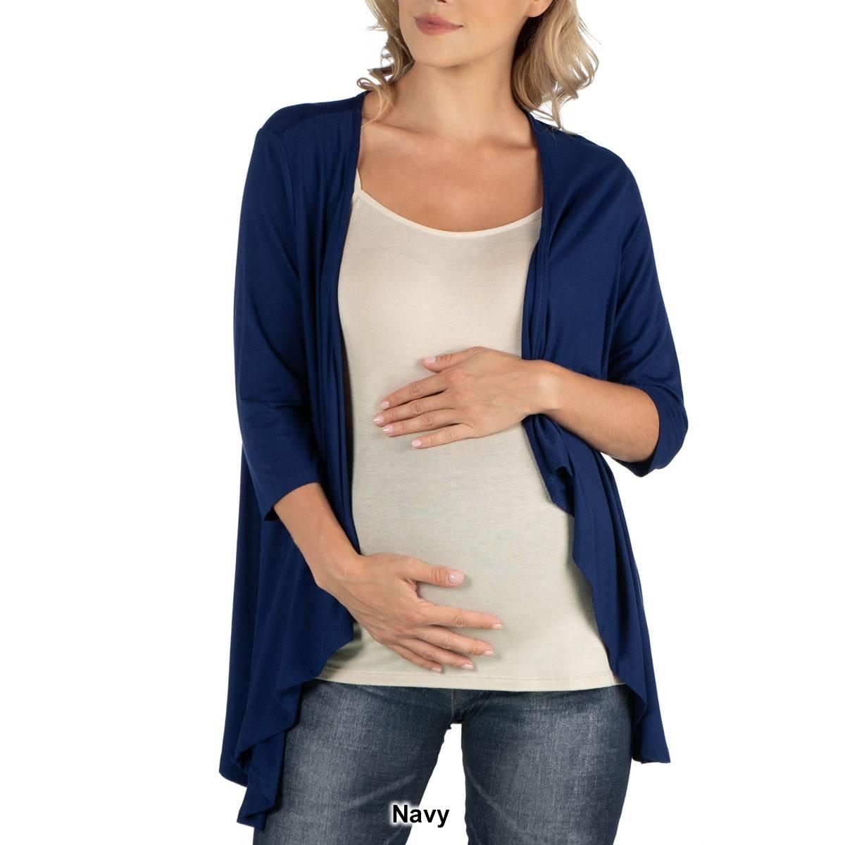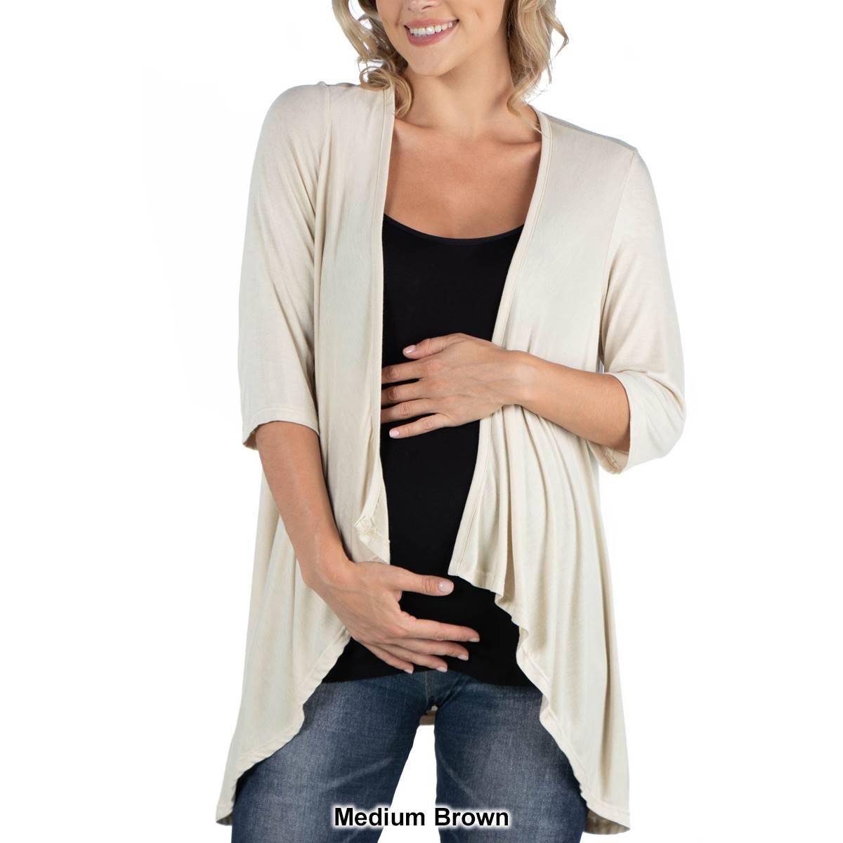 Description Create a stylish layered look with this Womens 24/7 Comfort Apparel open front maternity cardigan. Featuring a cascading front shape, elbow length sleeves, and a...