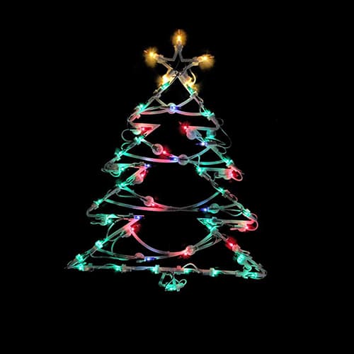 This Northlight Seasonal 18 inch pre-lit Christmas Tree window silhouette will brighten up your window decor this season! Its light bulbs are UL listed, and if one burns out, the other remain lit. Replacement bulbs and spare fuses are included and contain 1 plug with end connector. (Not to exceed 210 watts).