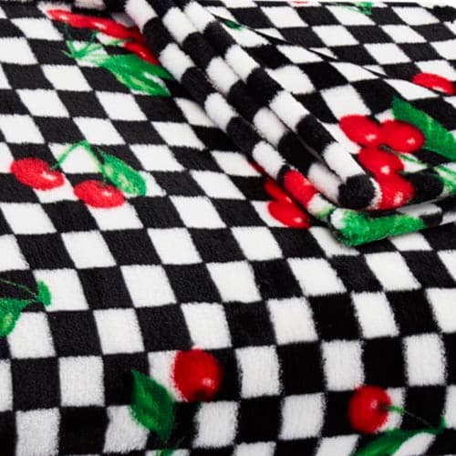 Description This Betsey Johnson Cherry Checker ultra-soft plush throw blanket will add unique style to your home. The cozy throw features a black and white checkerboard print...