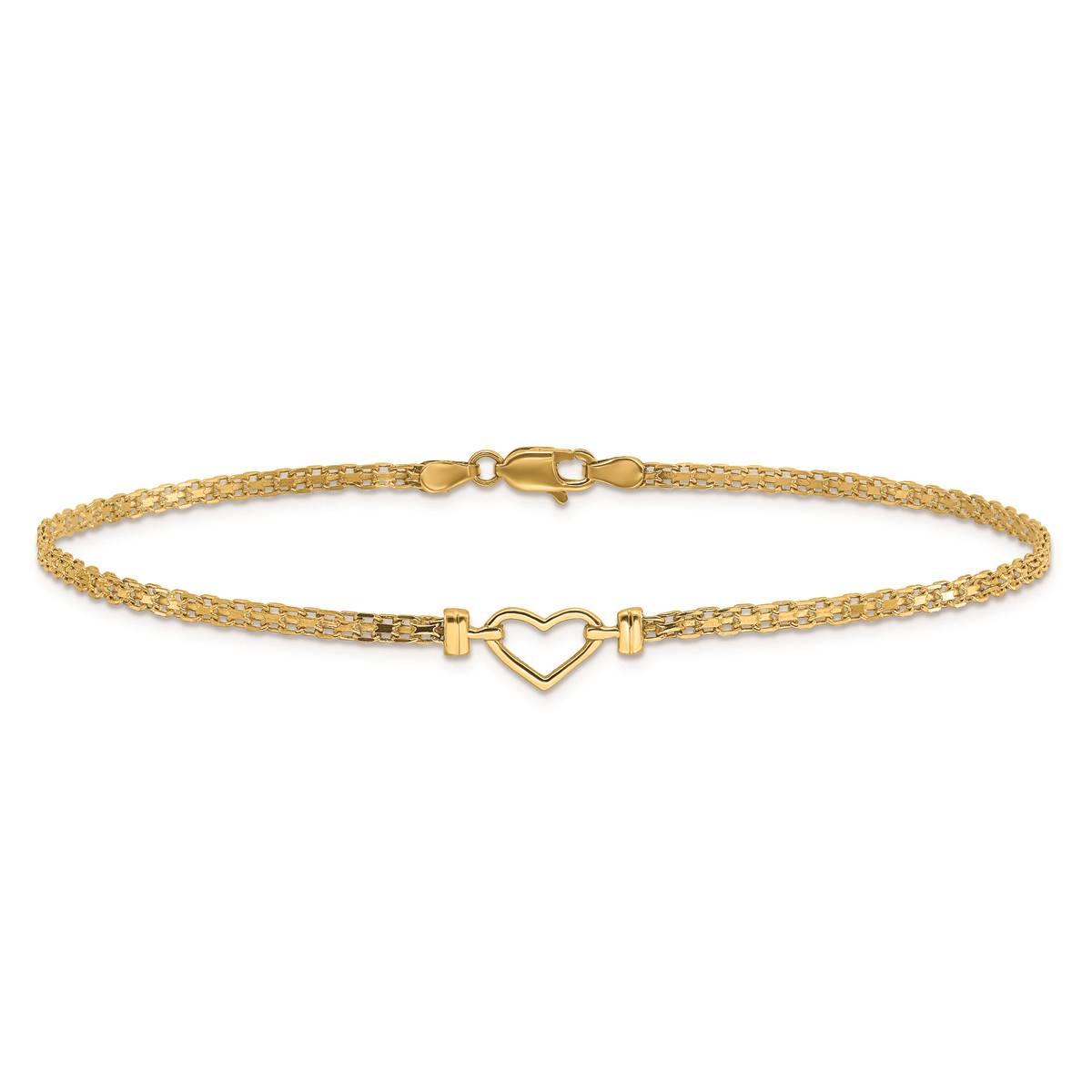 Description The 14kt. gold anklet features a polished open heart design. This jewelry will dazzle any ankle and can be worn for a casual look or can be added to other pieces to...