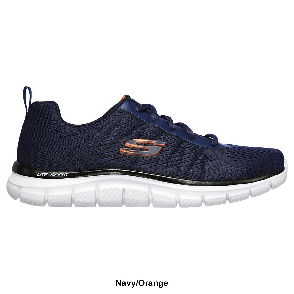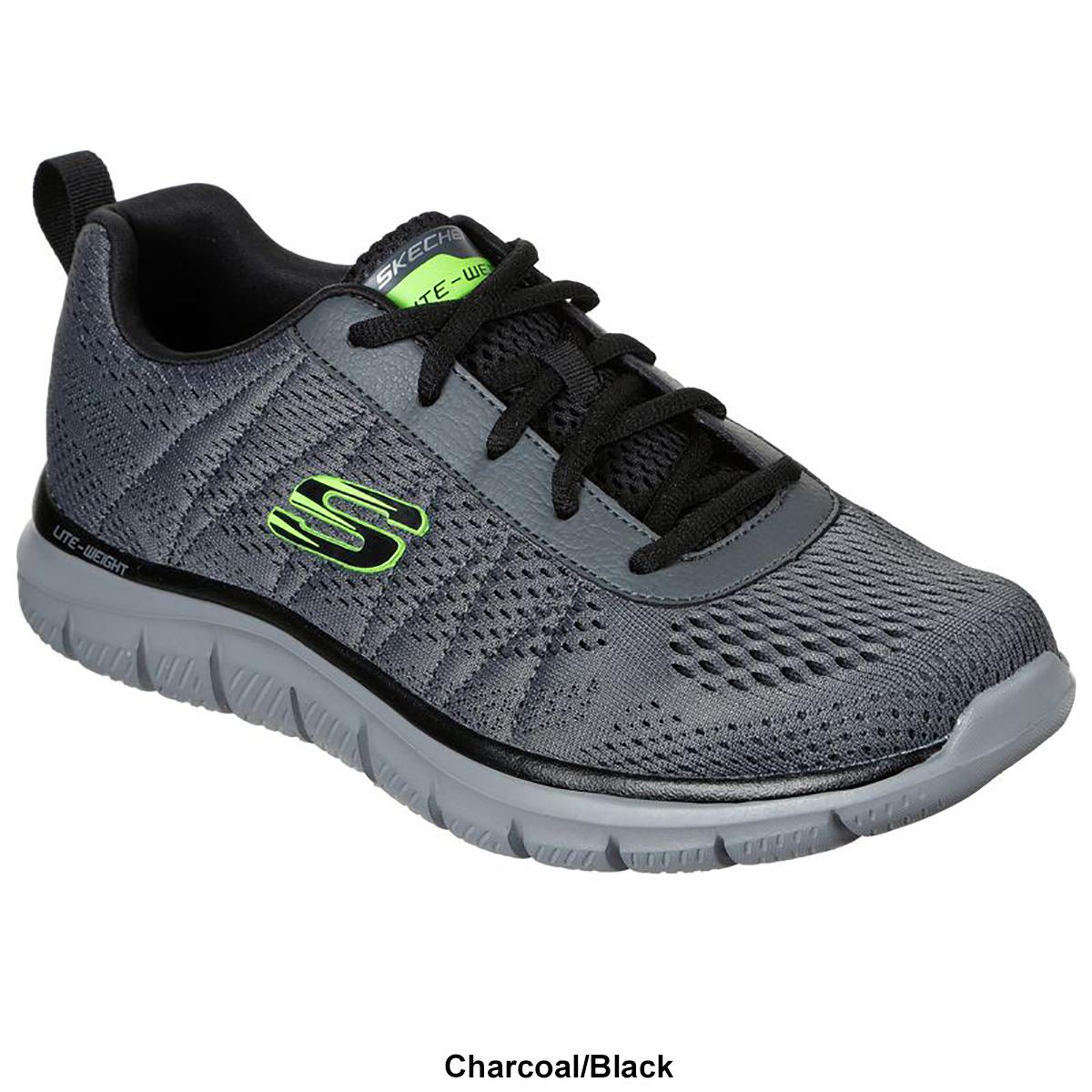 Description Train in cool lightweight comfort and sporty style with the Mens SKECHERS Track - Moulton sneakers. Soft engineered knit mesh fabric and smooth synthetic upper in a...