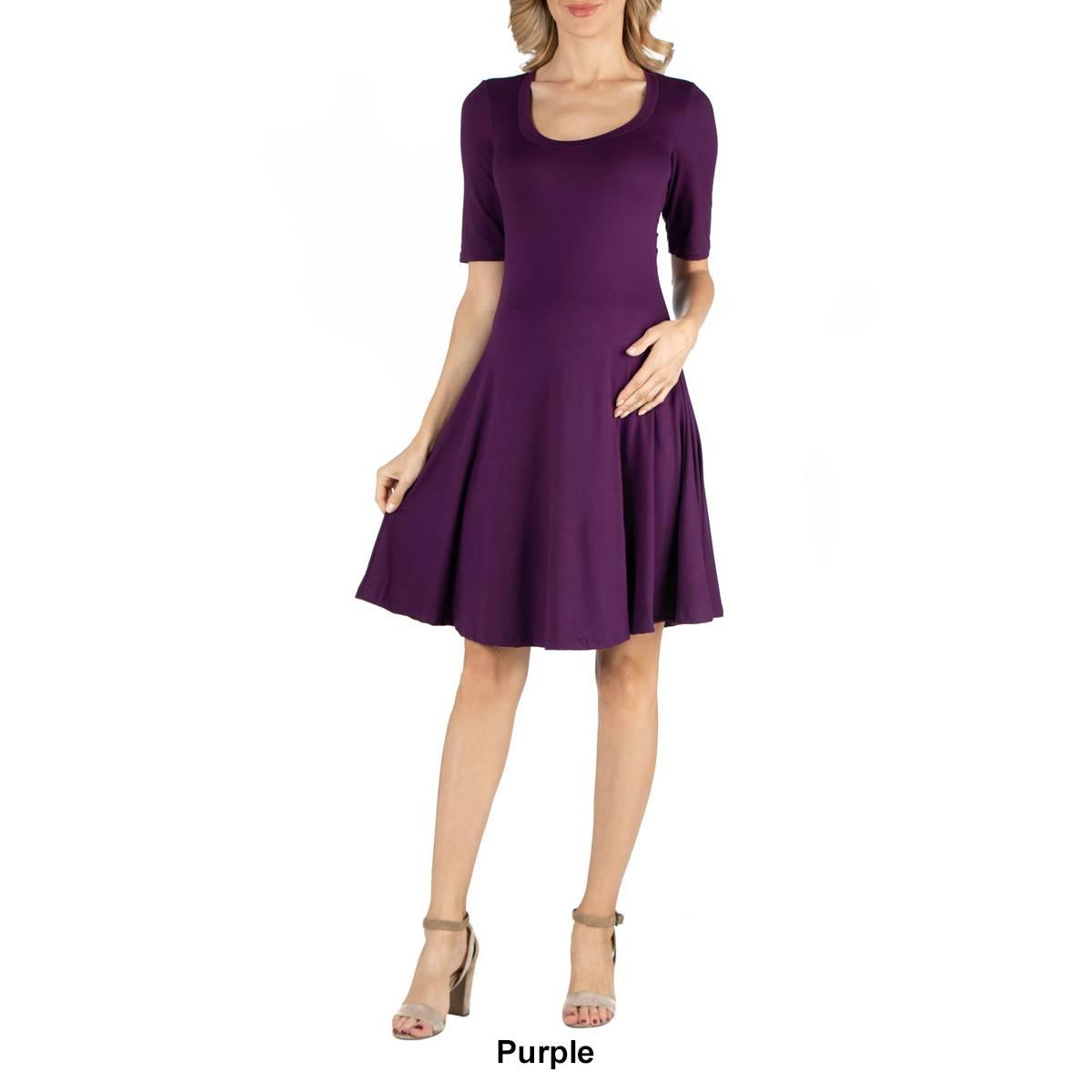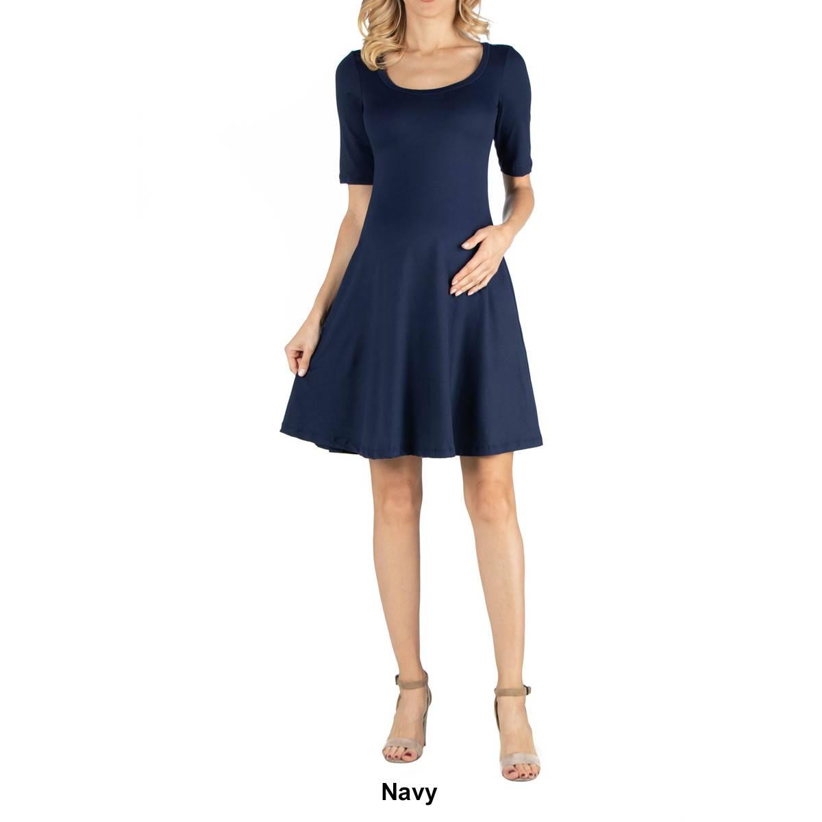 This simple but elegant this Womens 24/7 Comfort Apparel maternity a-line dress is a must have in any closet. Featuring elbow-length sleeves, slim fit waistline, scoop neckline, and soft flare hemline offers a comfortable fit for all silhouettes. Easy to dress up or down or to layer with, this is a versatile and timeless piece for every season.