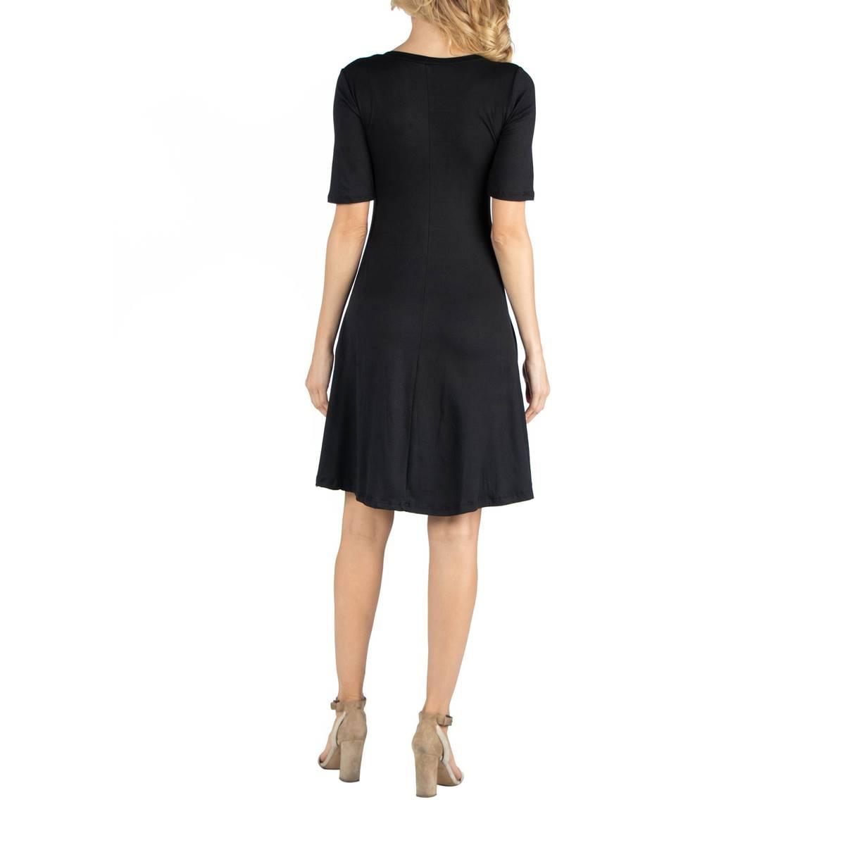 Description This simple but elegant this Womens 24/7 Comfort Apparel maternity a-line dress is a must have in any closet. Featuring elbow-length sleeves, slim fit waistline,...