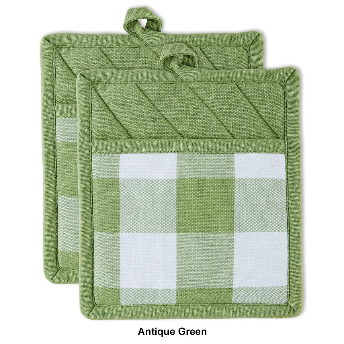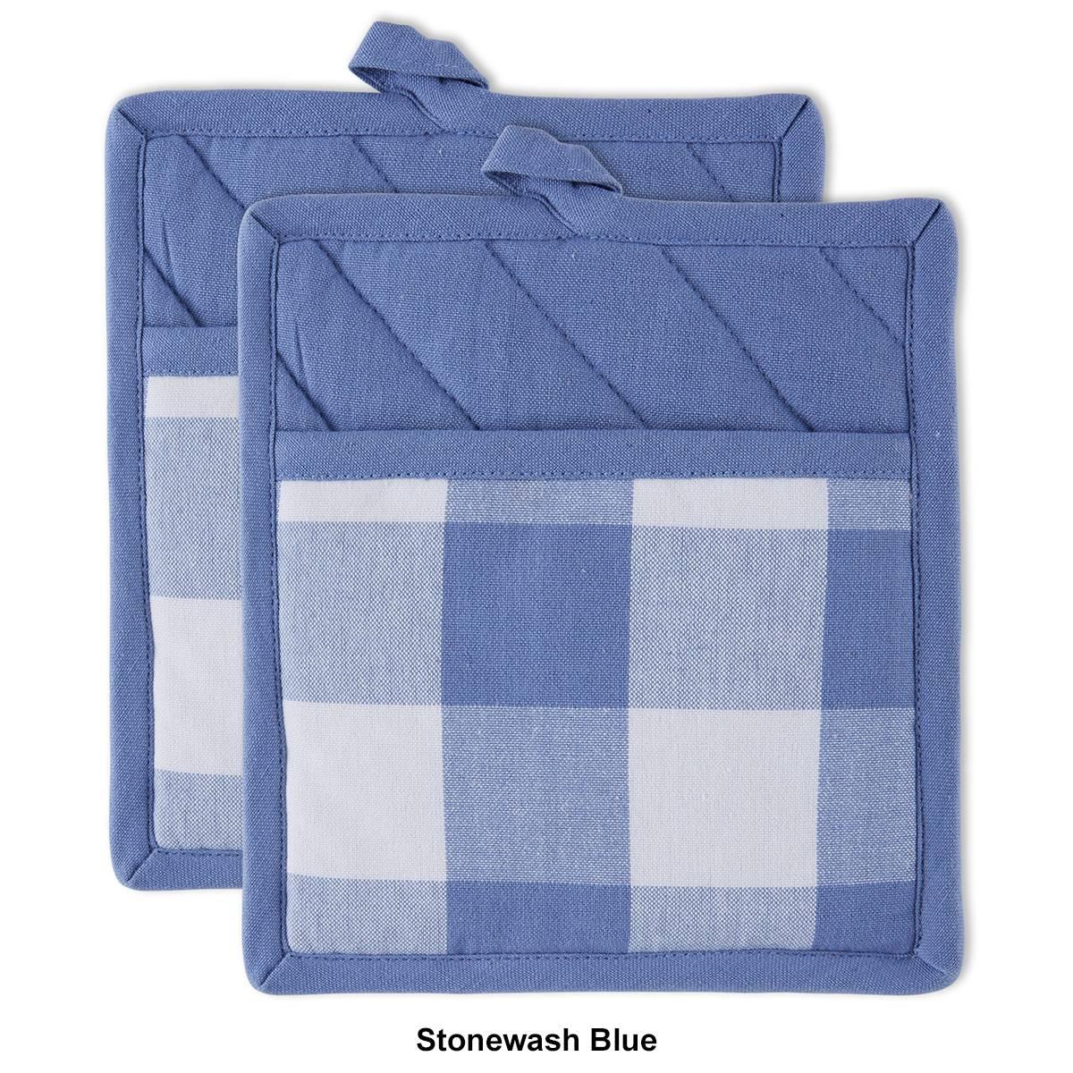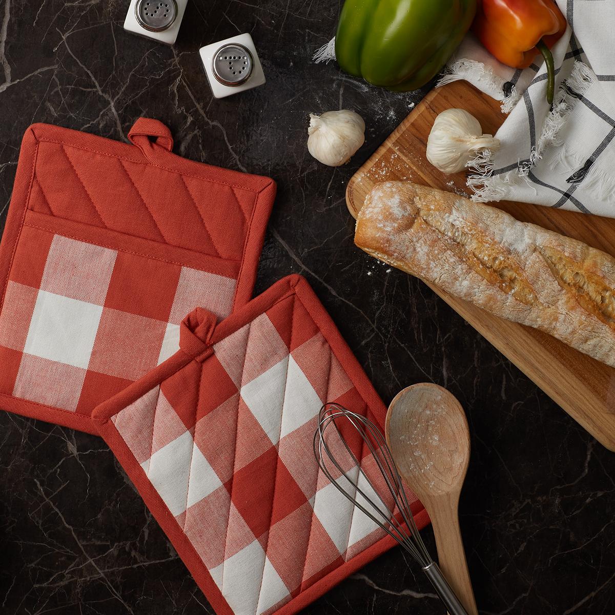 Description This set of two DII® buffalo checked pot holders are 100% cotton and feature a buffalo check print that will be perfect to match every kitchen´s decor. They are...