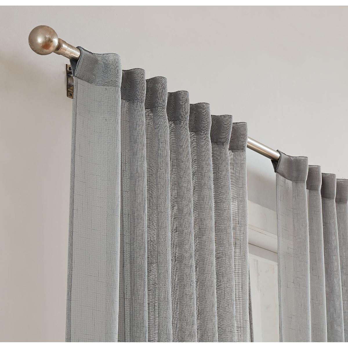 Description These Style 212 sheer window curtains will look great in any room of the house. Featuring a solid color slub yarn with a vertical stripe pattern, 3 inch rod pockets,...
