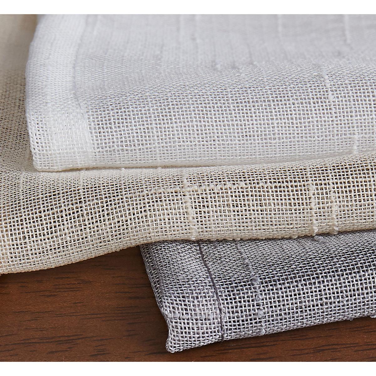 These Style 212 sheer window curtains will look great in any room of the house. Featuring a solid color slub yarn with a vertical stripe pattern, 3 inch rod pockets, and back tabs.