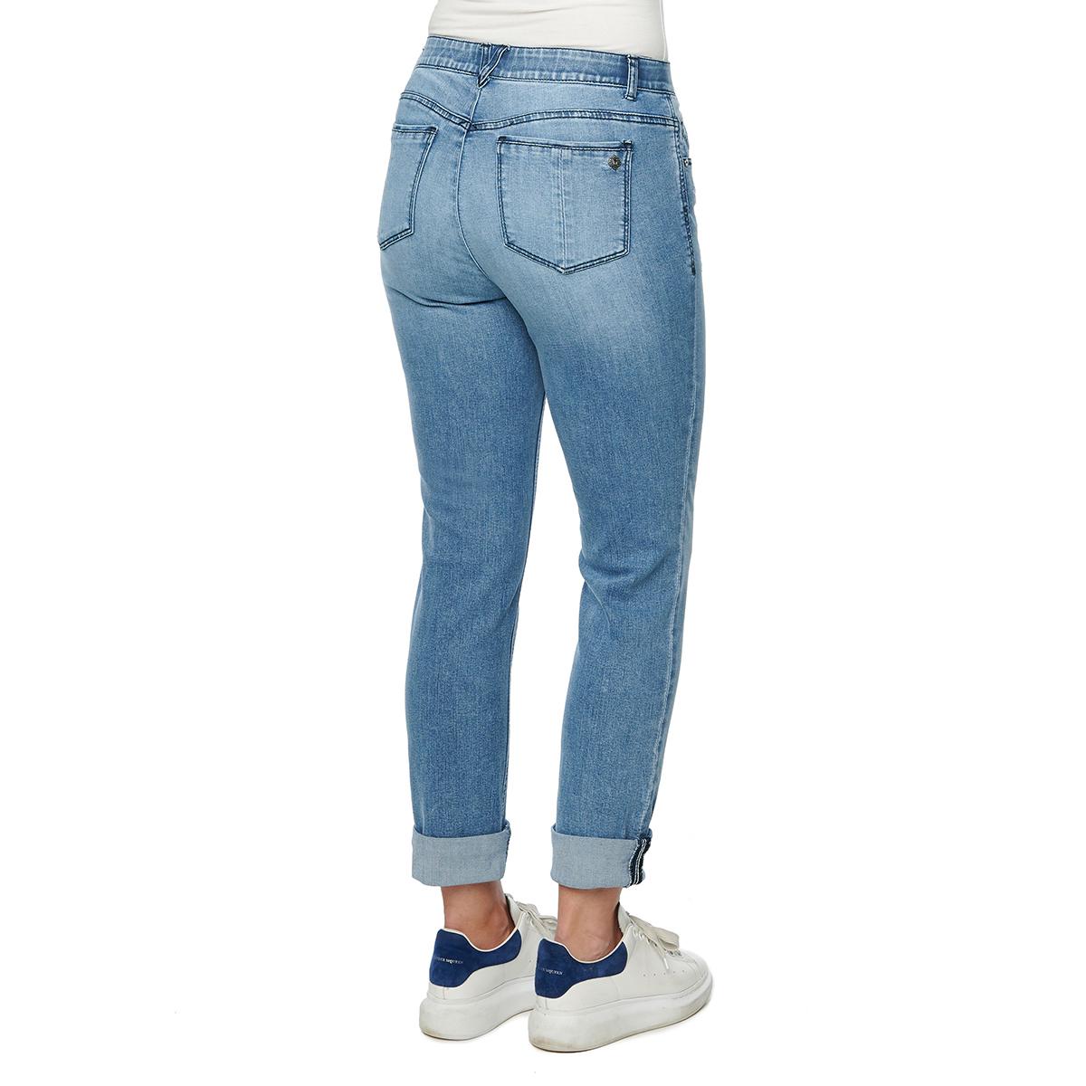 These Democracy "Ab"solution® girlfriend cuffed jeans are a classic-cool style with a relaxed fit, cuff-able length, and literal cooling technology to keep you dry and the moisture away even on the warmest summer days! The bottoms feature traditional 5-pocket styling, belt loops, hidden no-gap elastic waistband, and button & zip fly closure.