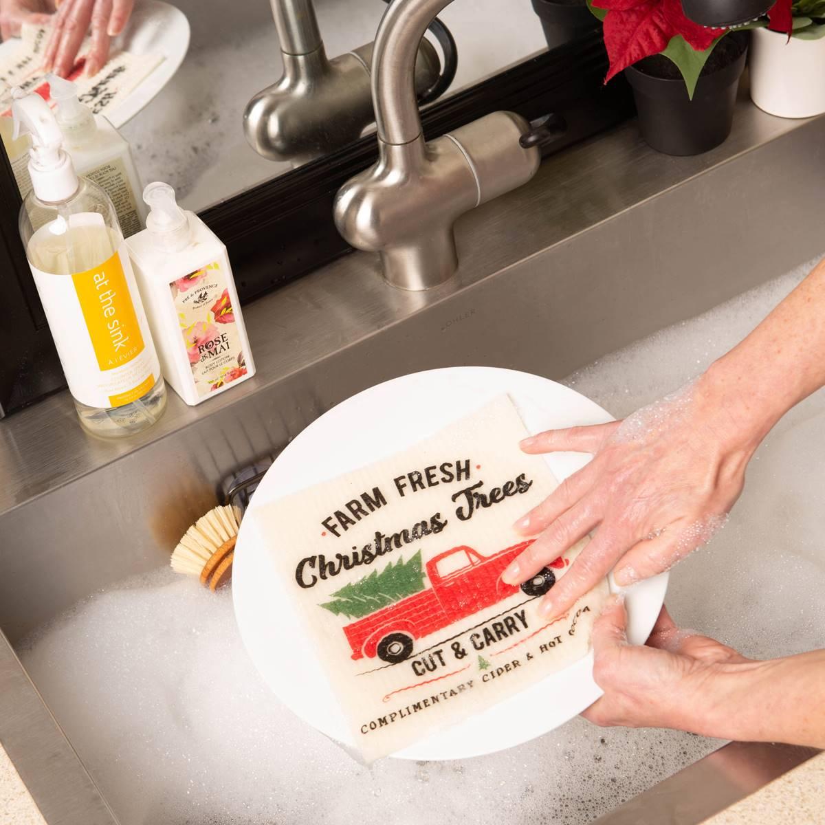 The DII® Christmas Truck dishcloth set is perfect to use to clean up during the Holiday season. Each cloth is printed with a vintage tree farm truck loaded with a pine tree and replace the need for paper towels.