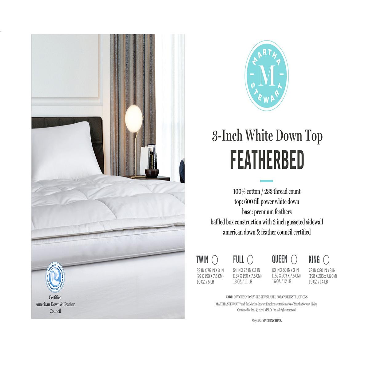 Description Enjoy a restful night’s sleep with this 233 thread count Blue Ridge Martha Stewart featherbed. It starts with a firm supportive base of small whole feathers and we...