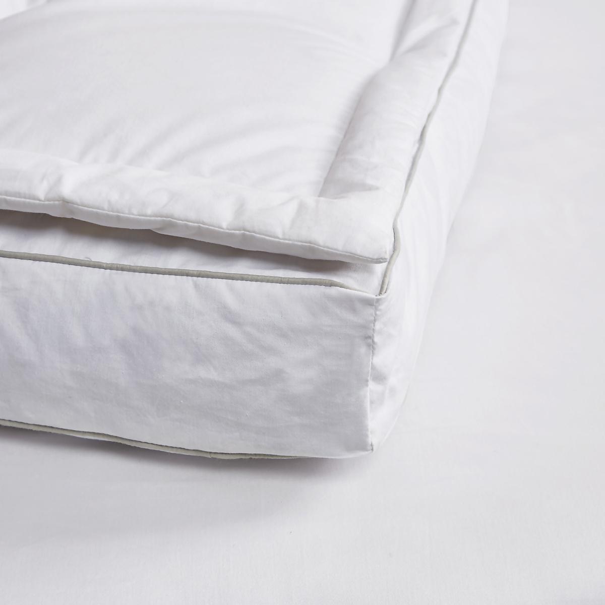 Enjoy a restful night’s sleep with this 233 thread count Blue Ridge Martha Stewart featherbed. It starts with a firm supportive base of small whole feathers and we top that off with a super soft layer of 600 Fill Power white down to give you the support and softness at the same time. It features a 1 inch top layer that is filled with premium 600 fill power white down to provide softness and a 2 inch base that is filled with feathers to provide more support. The FreshLOFT® process ensures that the down material is clean of dust, dirt, and allergens.