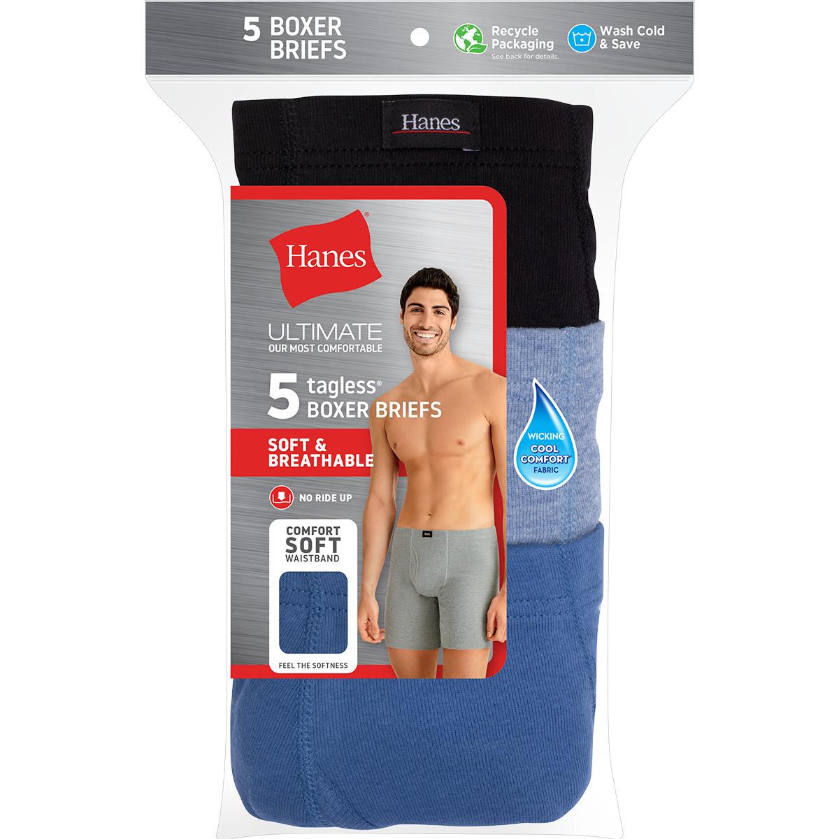 Elevate your everyday essentials with this Mens Hanes Ultimate® 5-pack pf boxer briefs. The boxer briefs feature a comfortable covered waistband, no ride up leg, and a soft breathable fabric.