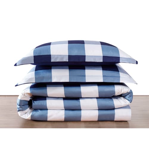 This Truly Soft Everyday Buffalo plaid comforter set features a large Buffalo check intersecting pattern on the face of the comforter while the reverse remains a solid color. 100% Microfiber Polyester. Machine wash.