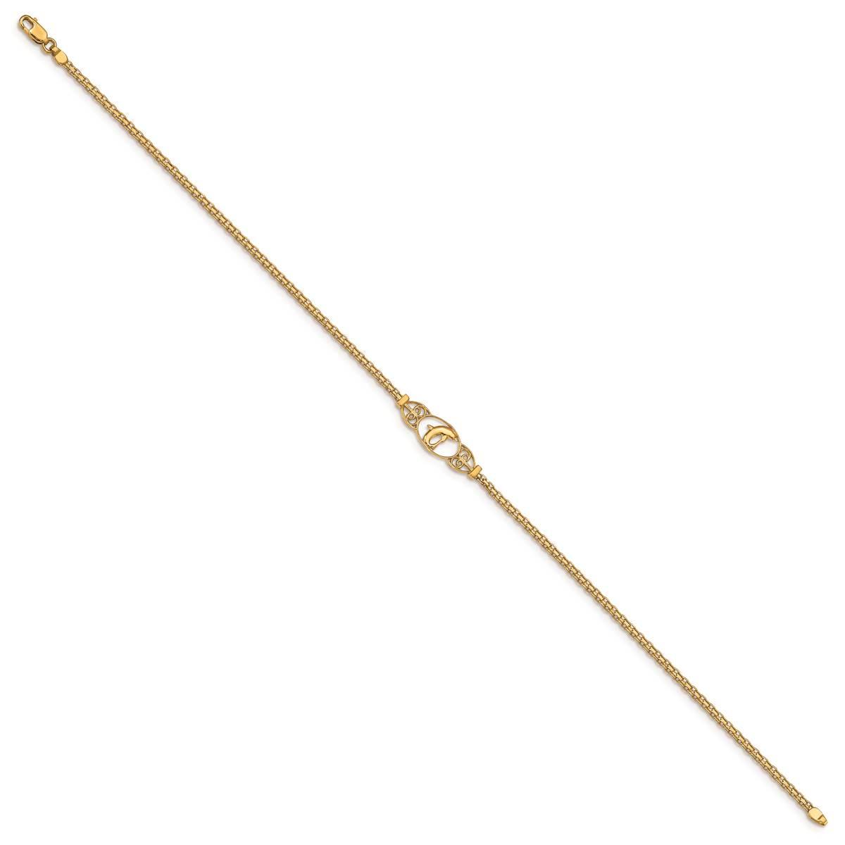 Description The 14kt. gold anklet features a polished dolphin design. This jewelry will dazzle any ankle and can be worn for a casual look or can be added to other pieces to...