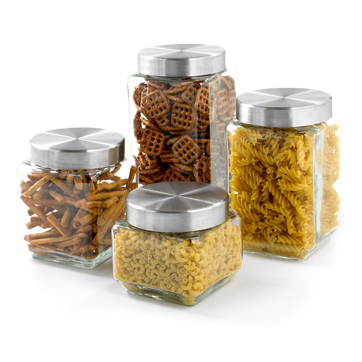 This Kitchenworks 4-piece square glass canister set is perfect for kitchen storage and organization. Featuring different sizes and secure lids that lock in freshness, these convenient vessels are ideal for storing various types of food.When ordering multiples of this item, additional shipping fees may be charged. Before levying such charge, we will contact you with the proposed amount of the charge. If you do not want to accept the surcharge, we will cancel your order without any penalty to you.