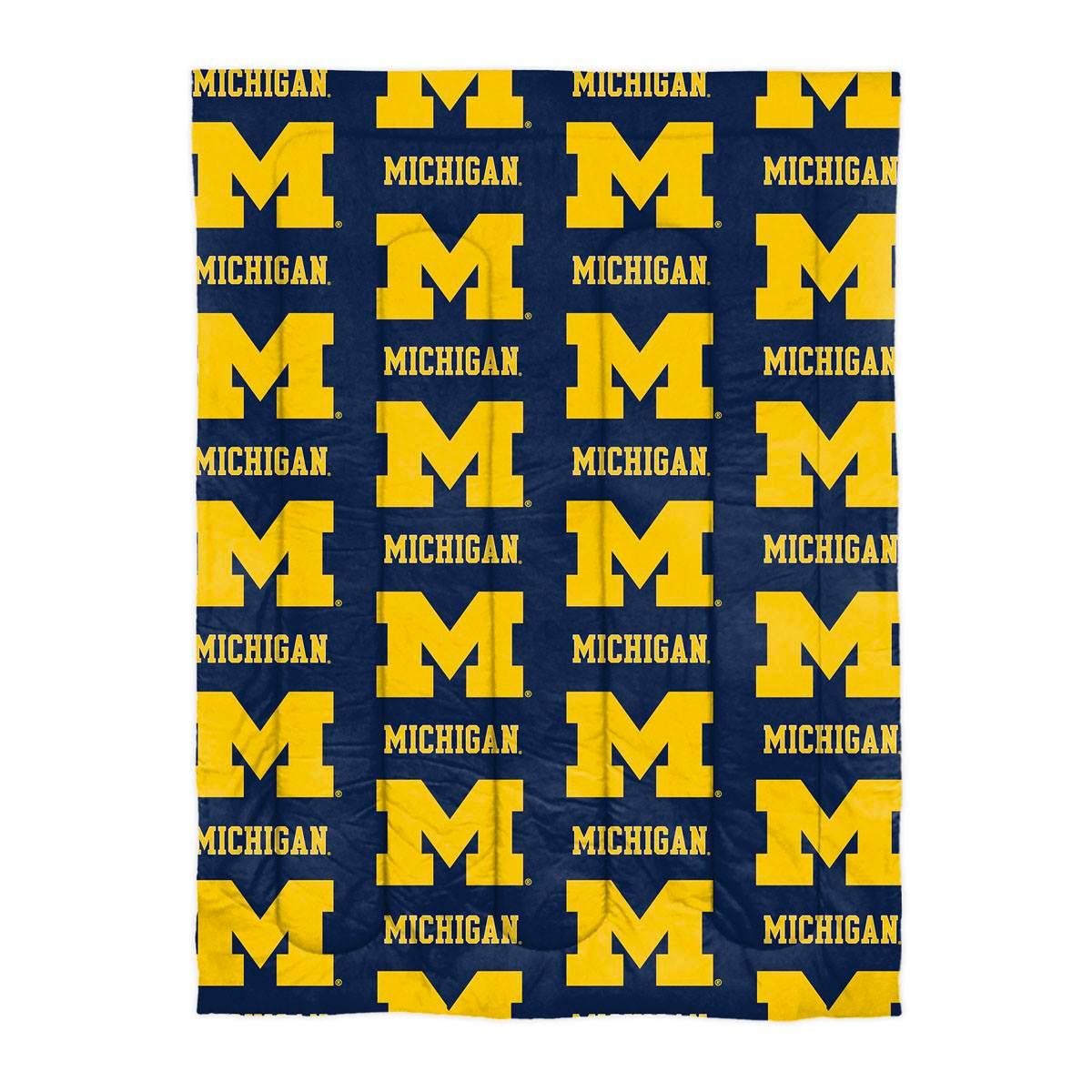 Dream about winning on game day while cozy in this The Northwest Company Wolverines Officially Licensed NCAA bed in a bag set. Designed around your favorite college team, this twin bedding set features a repeating print of team name and logos on the comforter and pillowcase, on a team-colored background. The sheets match, with a repeating print of team logos on a white background.