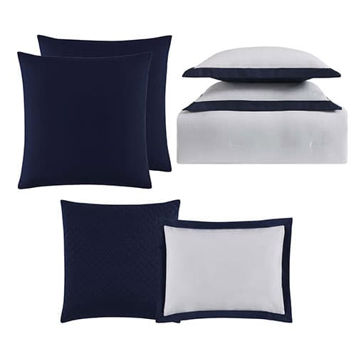 Truly Soft Everyday Hotel Border 7 piece comforter set highlights clean lines and classic luxury at a great value with unbelievable softness. The face and back of all items use Truly Soft fabric made with finer yarns and special washing techniques to provide the best in softness. These items are brushed for added softness and come with European shams and 2 decorative pillows to complete the bed. 100% Microfiber Polyester with Polyester fiber filling. Machine wash.