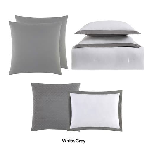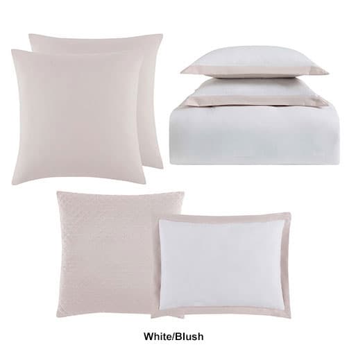 King Set measures 104” x 90” and includes 2 20” x 36” shams, 2 26” x 26” European shams, 1 12” x 16” decorative pillow, and 1 16” x 16” decorative pillow.