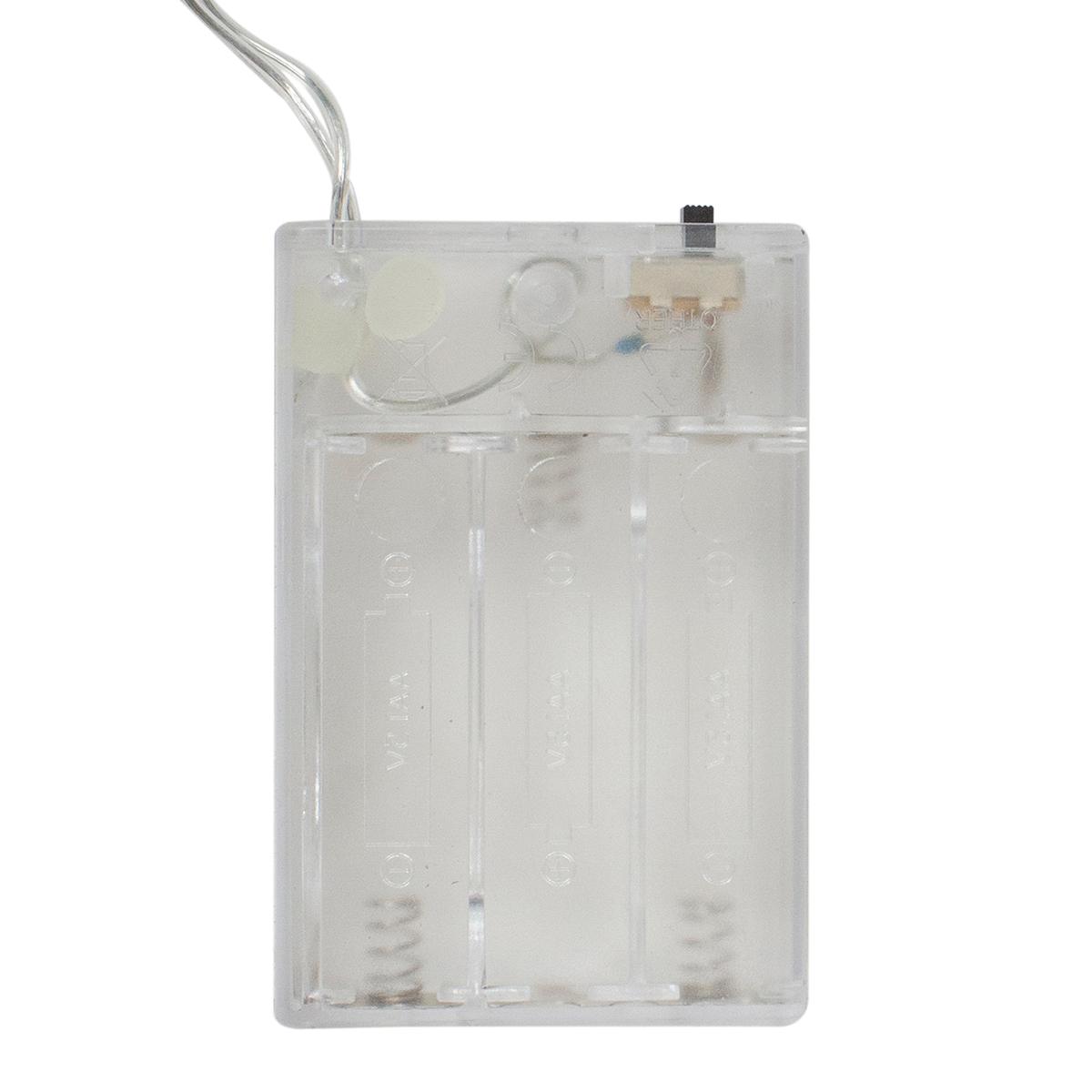 Spread a little luck of the Irish with these novelty shamrock string lights! They feature 20 mini green shamrocks on a clear wire with a battery pack. The automatic timer function allows for 6 hours on and 18 hours off. This product features green bulbs, clear wire, and green shamrock shaped light covers. The string lights come with 20 concave wide angle LED bulbs that use 90% less energy and cool to the touch. There is 4.5" spacing between each bulb with a lighted length of 7´ and a total length of 7.8´ on a 20" lead cord.Additional product features include an automatic timer function with 6 hours on and 18 hours off, non-replaceable bulbs, on/off switch located on the back of the battery pack. Dimensions: 7´L x 1.25"H