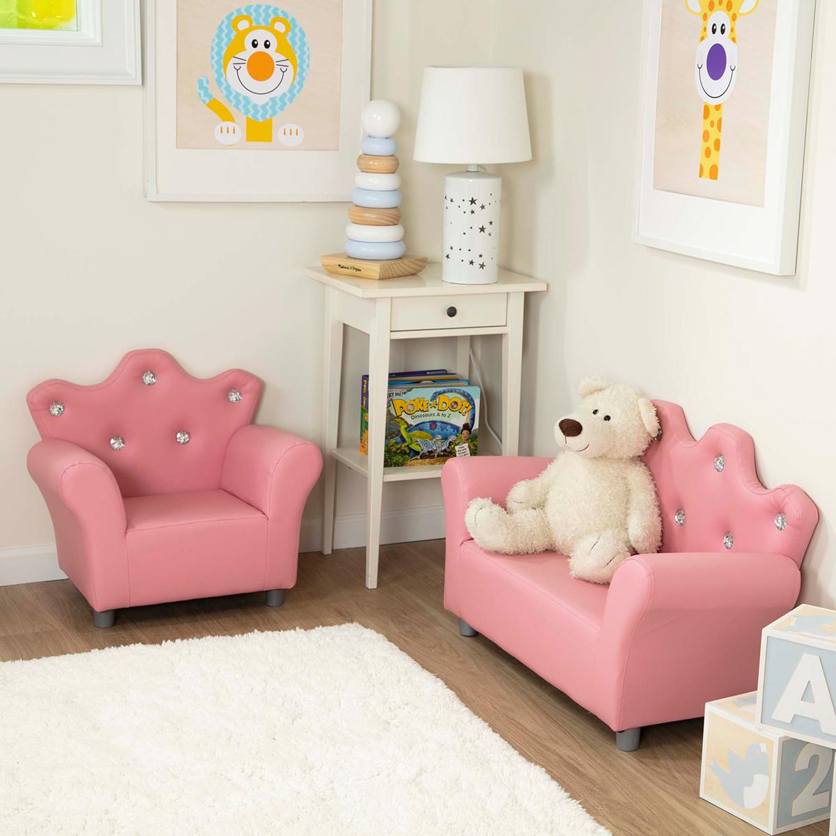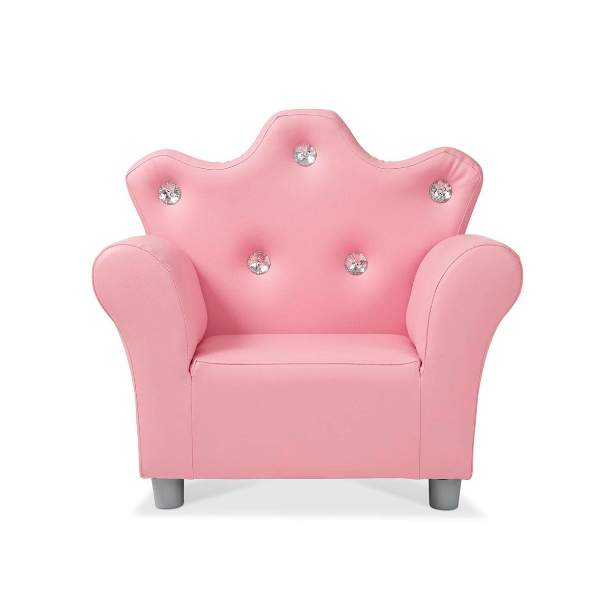 Description The Melissa & Doug® crown-back pink faux leather armchair with clear jewel accents looks great in any princess’s play space and gives kids the perfect comfy spot...