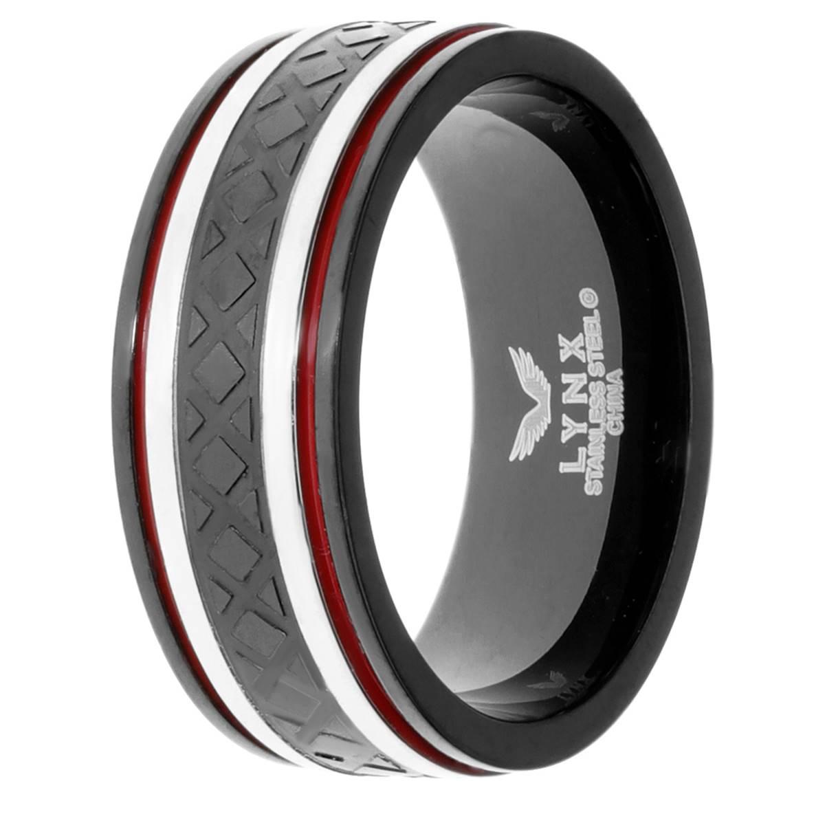 This incredible Mens Lynx stainless steel textured ring looks great and feels great, too. With a cool combination of colors and a texture that really pops, it’s sure to stand out with any outfit in the wardrobe. He’ll love the way the texture feels and looks, durable high-quality stainless steel coated in black ion-plating and red resin will stand the test of time and can be worn for a long time.