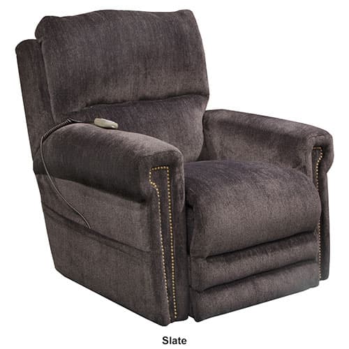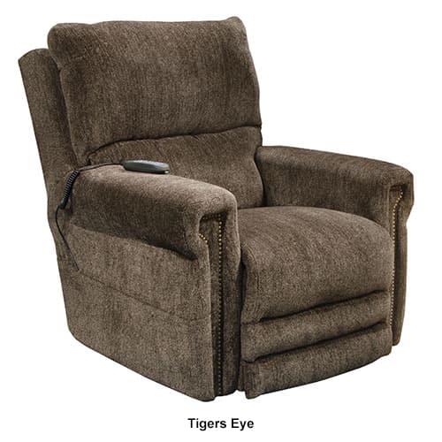 Catnapper Warner power headrest with lumbar lift recliner, features a power headrest and power lumbar for extreme comfort. Layflat recliner with extended ottoman for tall statures. Supports up to 400 lbs.