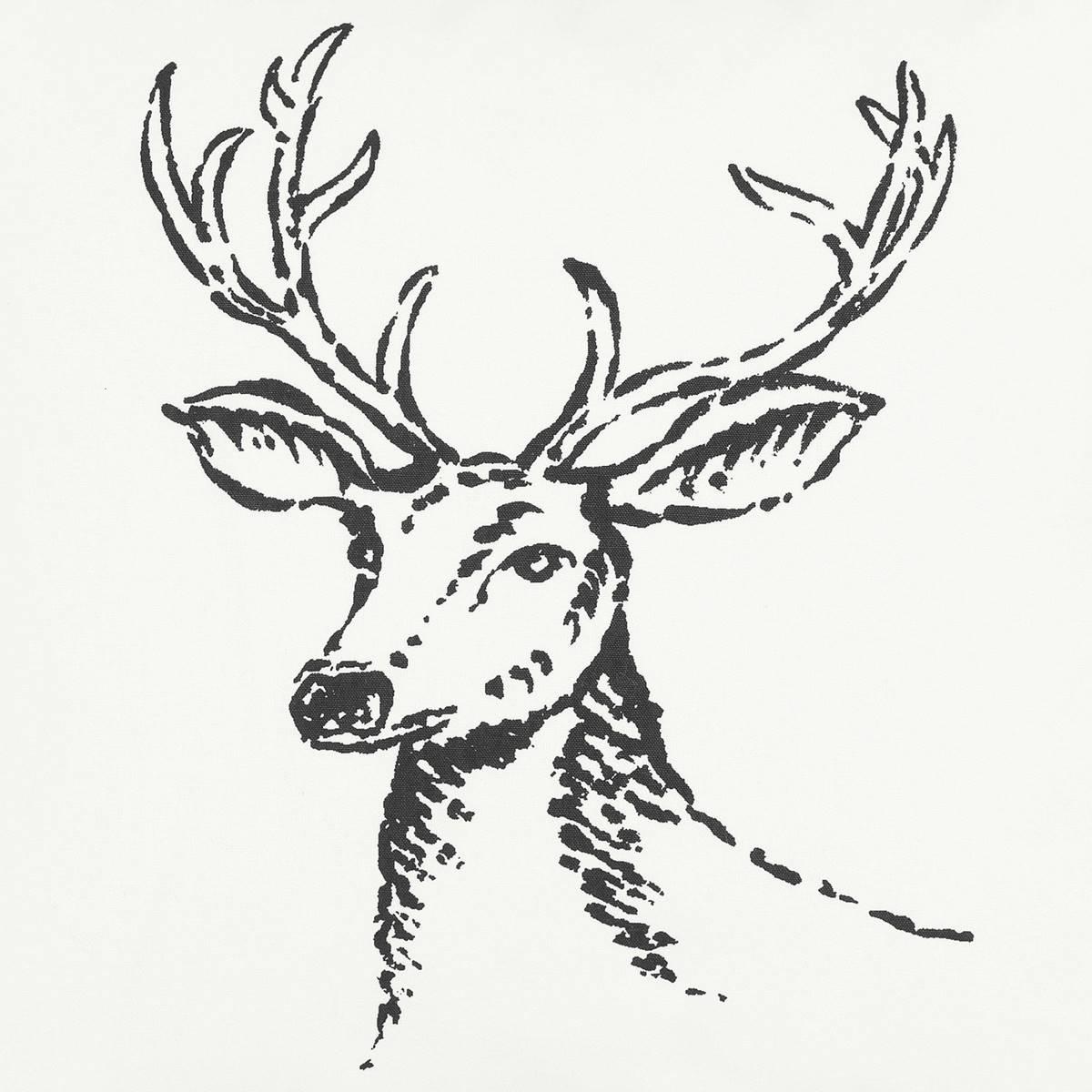 The Eddie Bauer Winter Morning Stag square pillow features a large black elk printed in the center of an off-white background. This bold cotton pillow is soft and will look great on any couch or bed and adds a touch of style to any room.