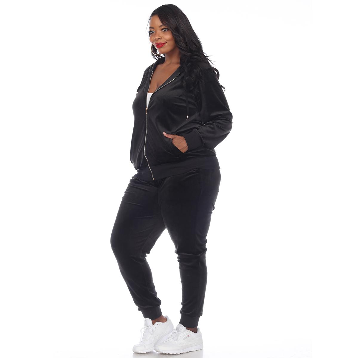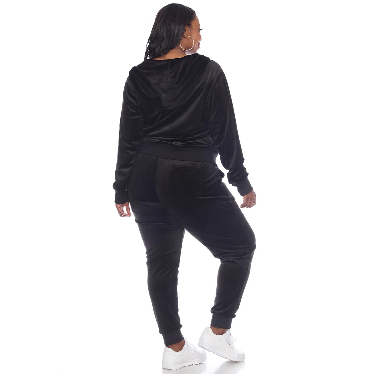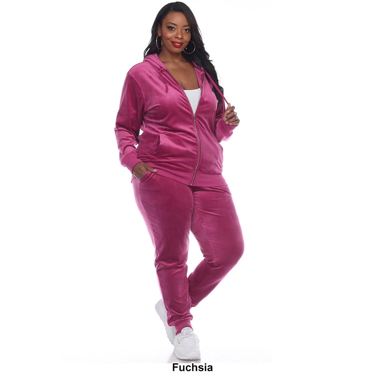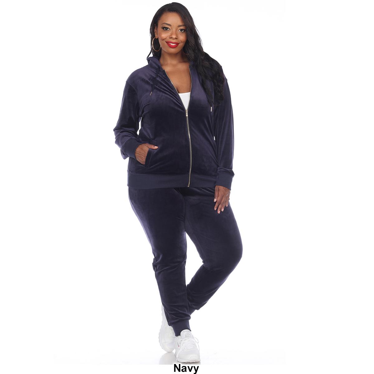 Description This Plus Size White Mark tracksuit set features the softest velour with a famous fitted style. The set includes a zip-up hoodie with two front half-kangaroo pockets,...